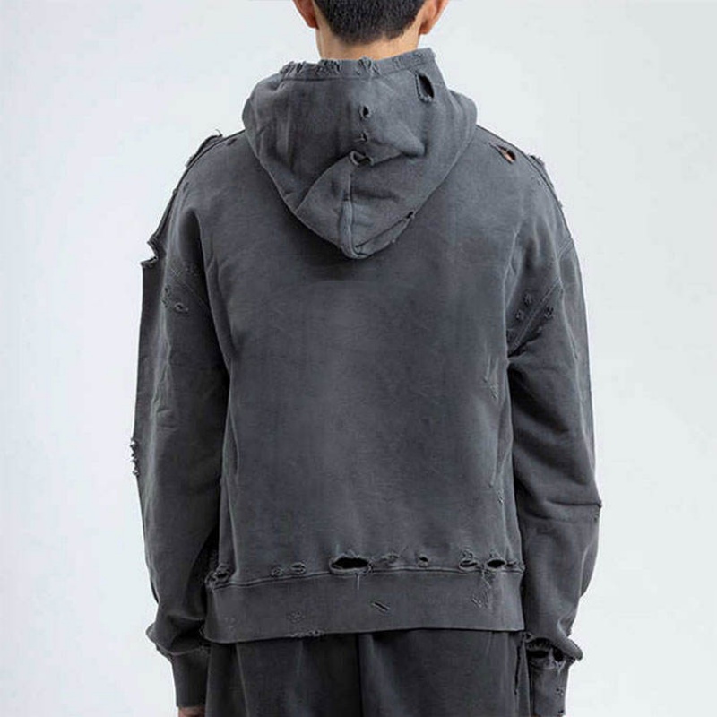 Acid Wash Vintage Hoodie - Heavyweight Fleece Pullover for Men