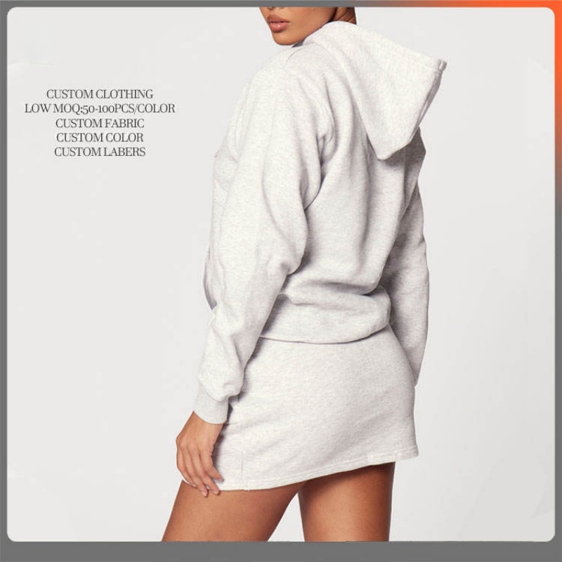Women's Hoodie and High-Waist Skirt Set - Long Sleeve Pullover with Drawstring Skirt
