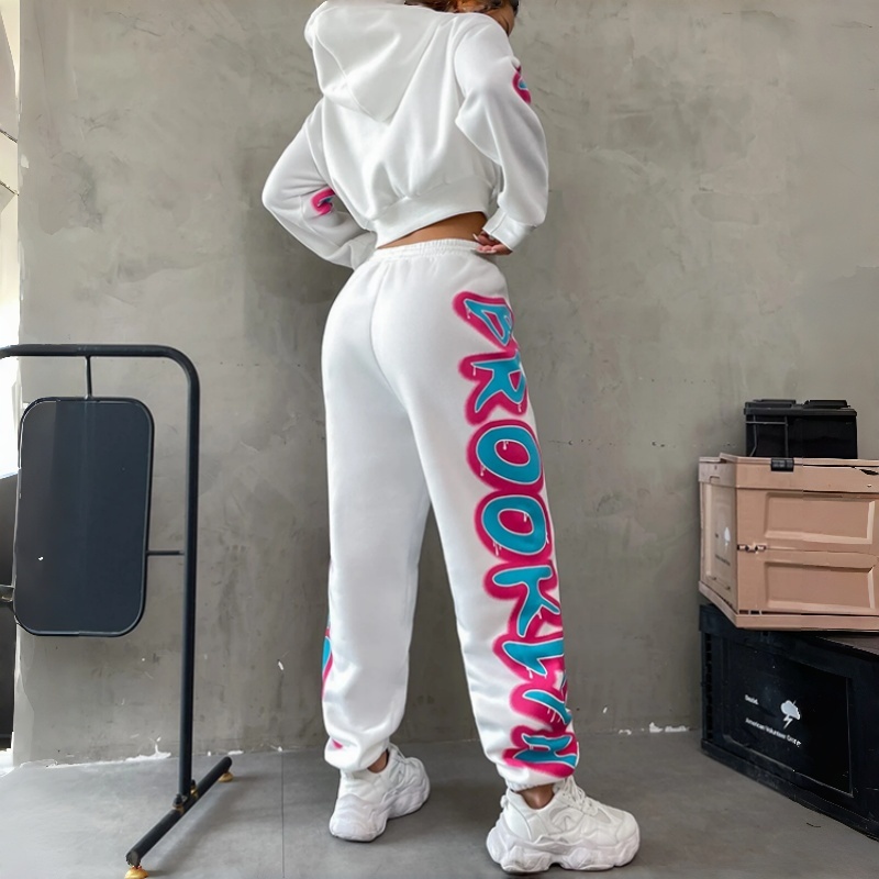Women's Letter Print Crop Top Hoodie Set - 2-Piece Streetwear Tracksuit with Jogger Pants