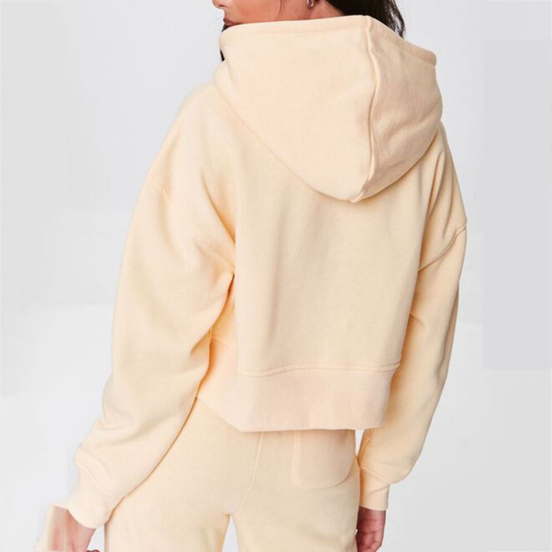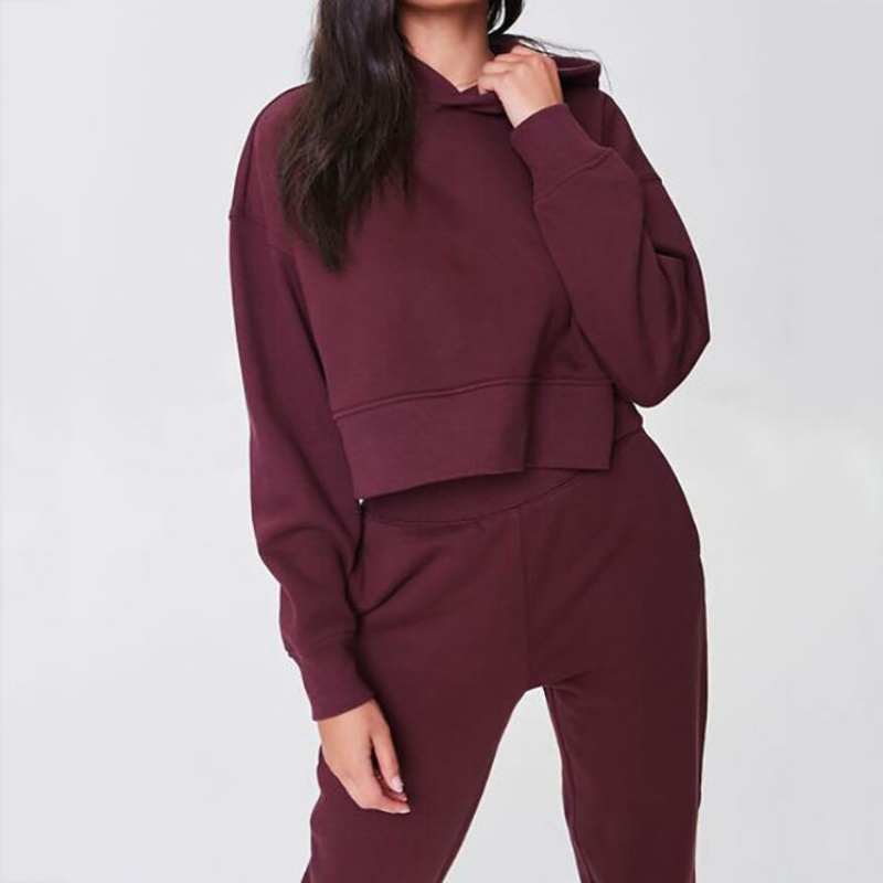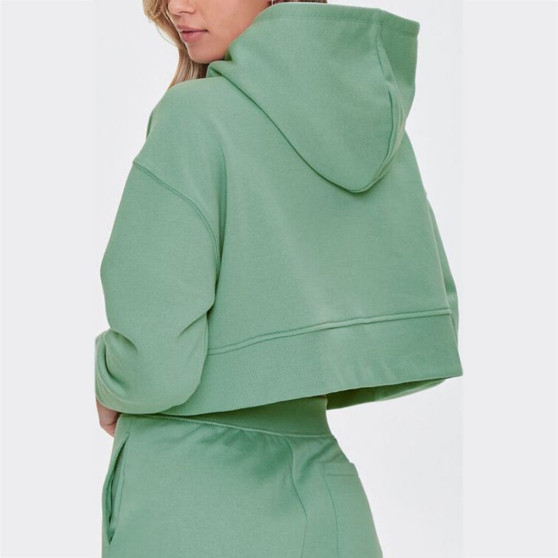 Women's Wool Blend Cropped Hoodie - Long Sleeve Pullover with Sexy Cut