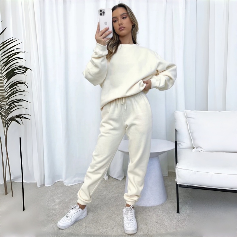 Round Neck Hoodie Set | Premium Cotton, Puff Embroidery Print Women's Hoodie Set