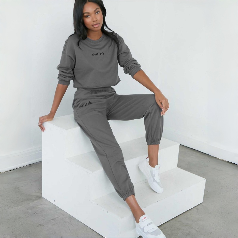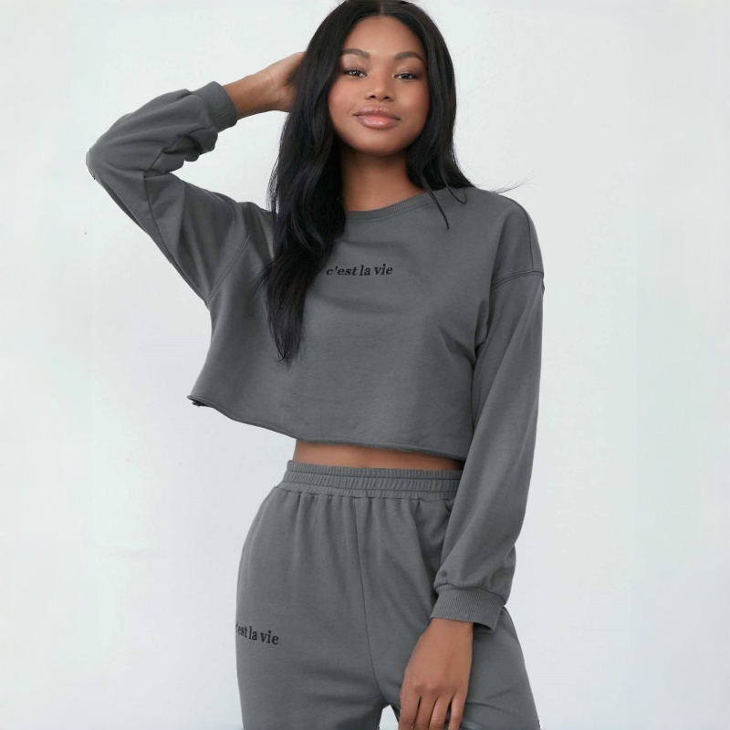 Korean Style Casual Hoodie Set | Dropped-Shoulder Slogan Hoodie & Sports Shorts, Loungewear Set Women's Hoodie Set
