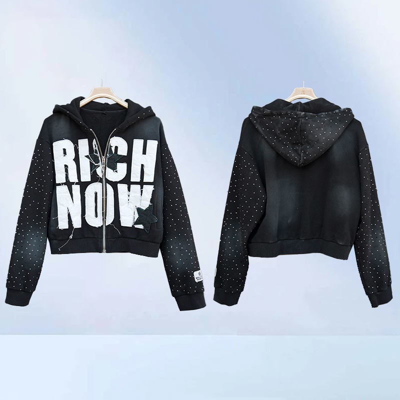 Monkey Wash Pearl Crystal Embellished Zip Y2K Heavyweight Hoodie and Pants 2-Piece Set Women's Hoodie Set