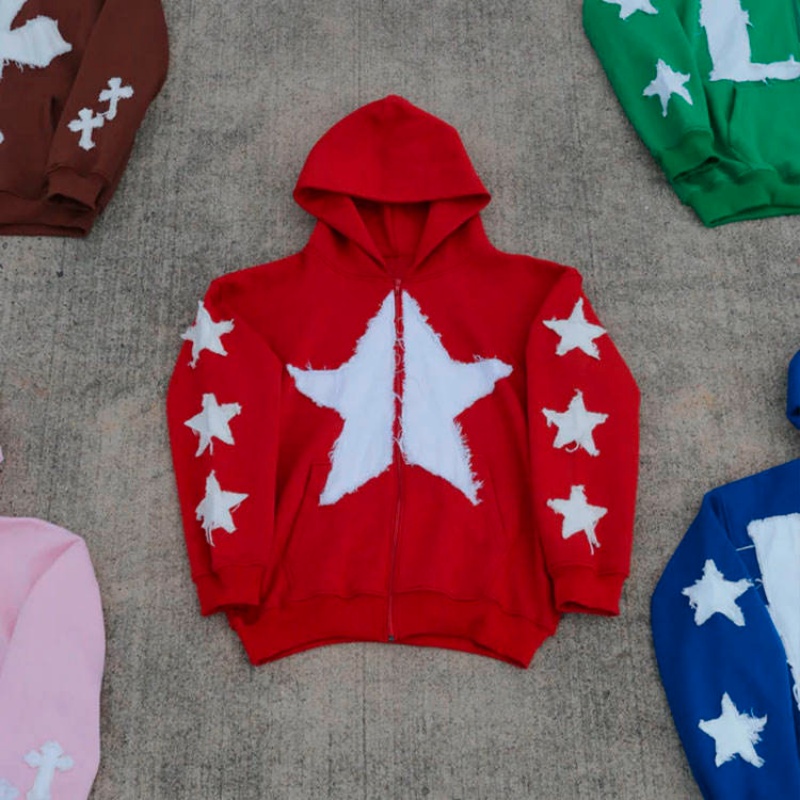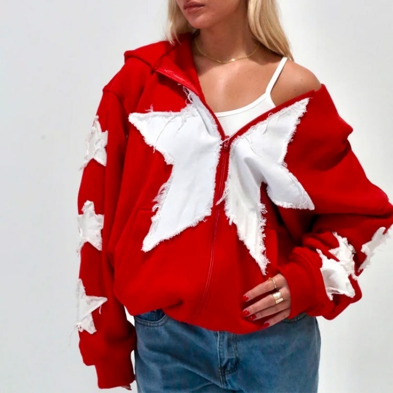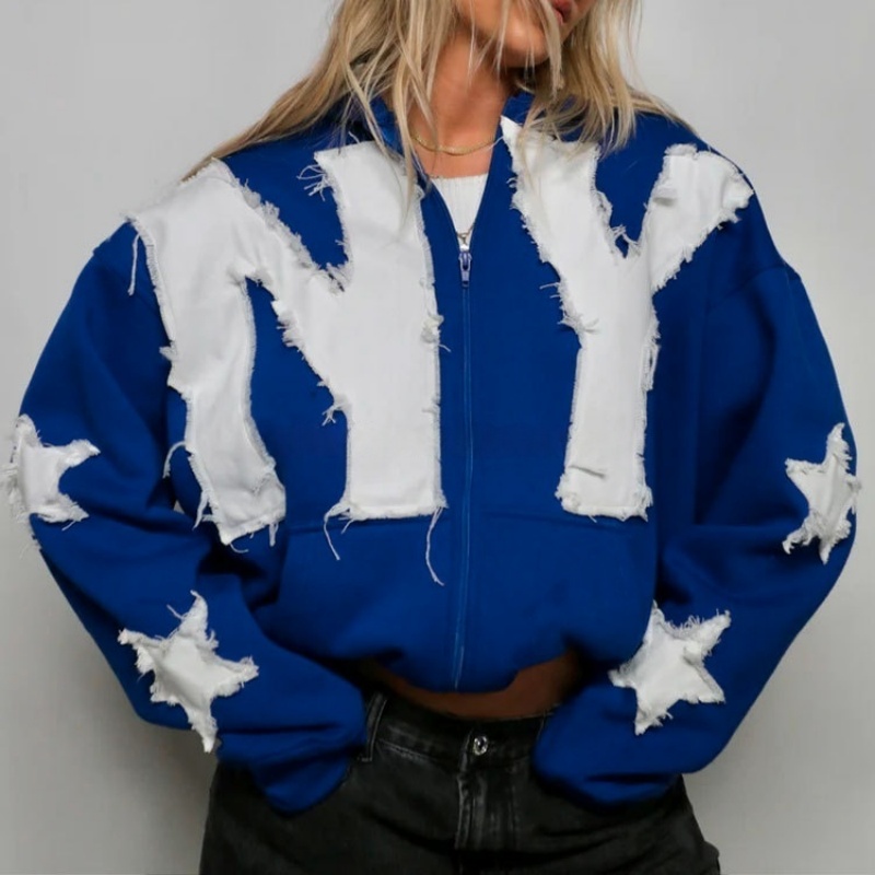 Patch Embroidery Y2K Style Oversized Zip Heavyweight Wool Women's Hoodie