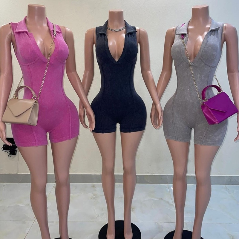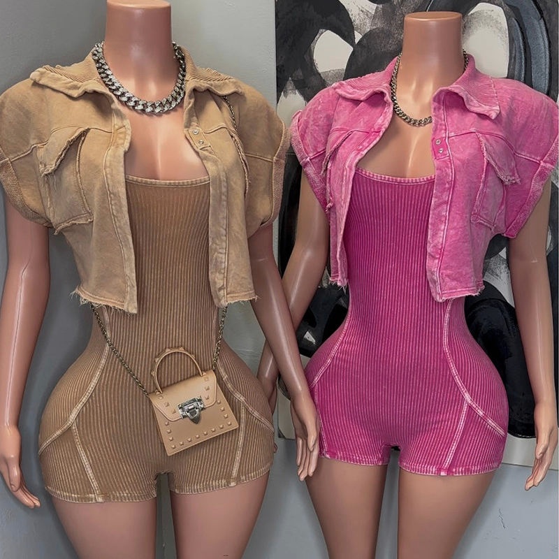 Acid Wash Ribbed Top and Strapped Shorts Jumpsuit Shorts 2-Piece Set Women's Hoodie Set