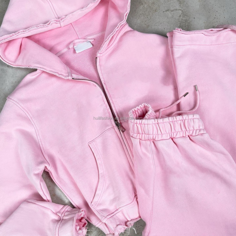 Vintage Acid Wash Distressed French Terry 100% Cotton Women's Hoodie Set: Hoodie, Sweatpants, Jumpsuit Dress, T-shirt, Can Freely Match