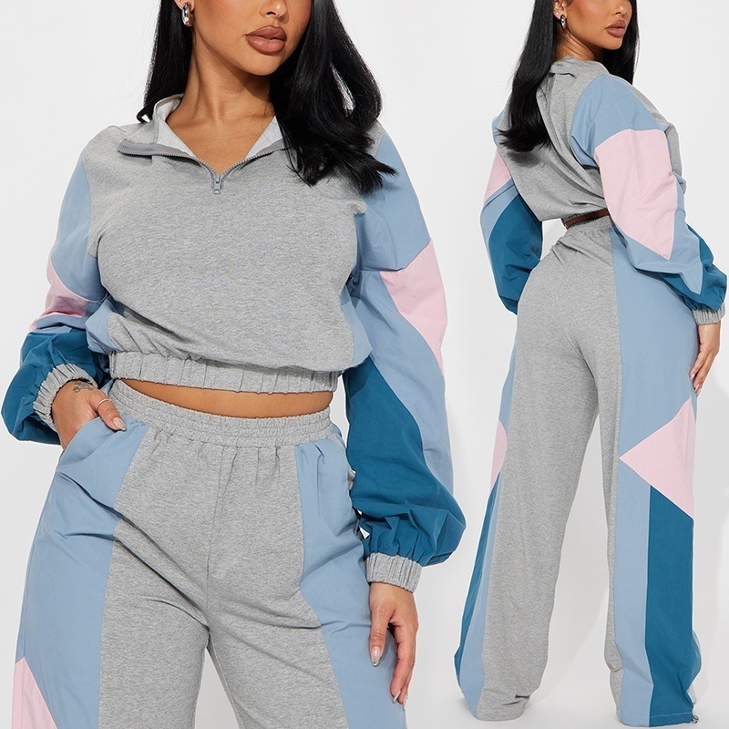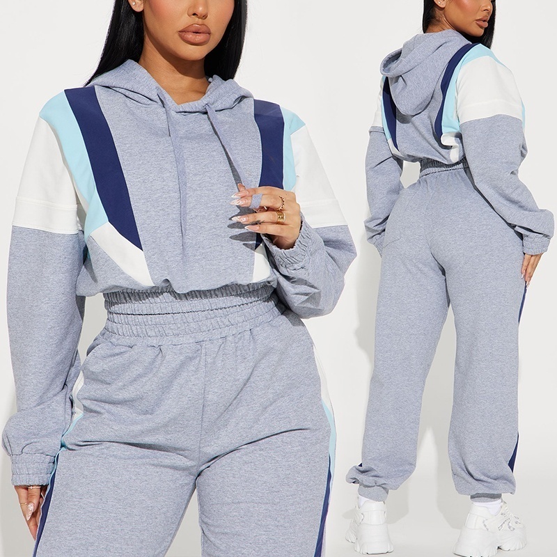 Patchwork Color Block Y2K Cropped Top Hoodie and Pants 2-Piece Set Women's Hoodie Set