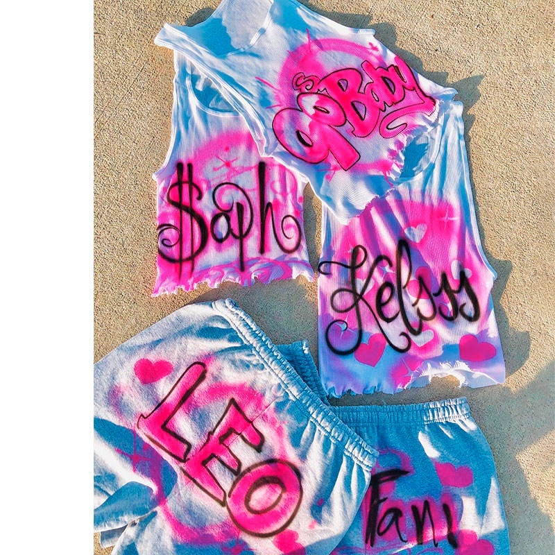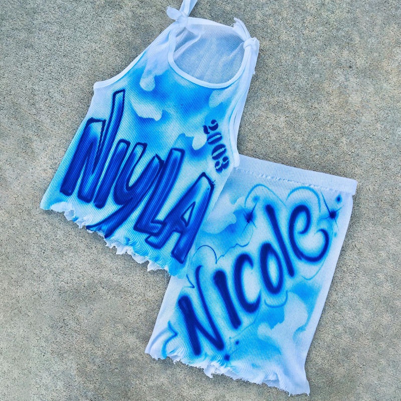 Graffiti Print Cropped Cotton Summer Sexy Vest and Short Skirt Women's 2-Piece Set