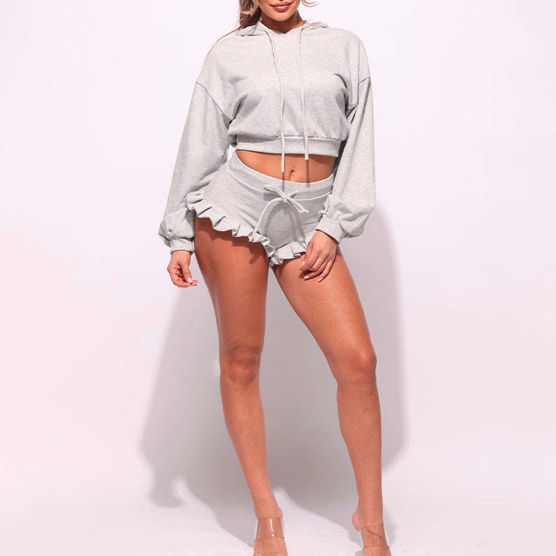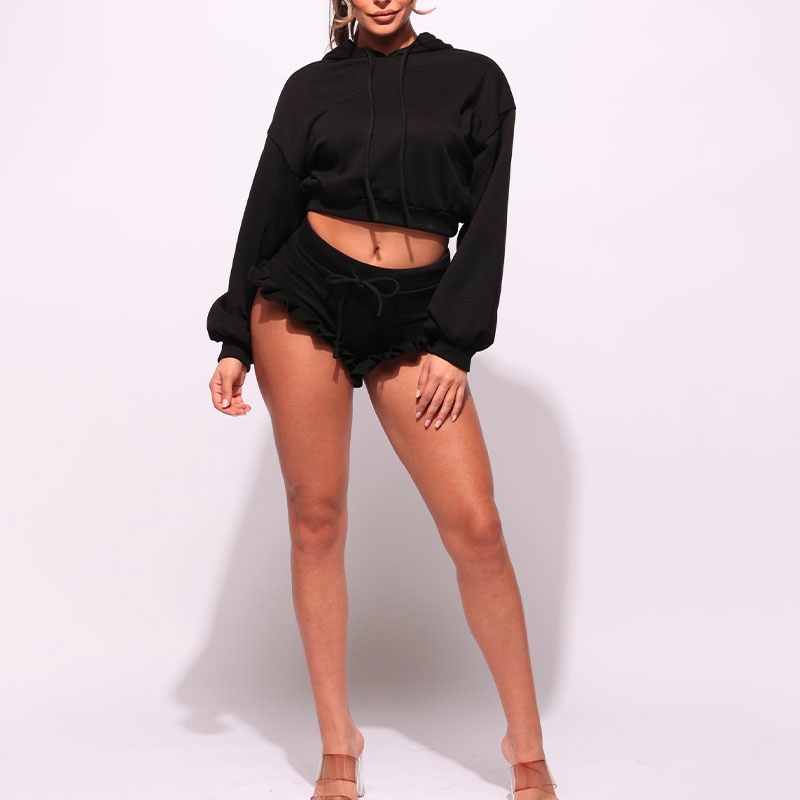 100% Cotton Hoodie and Shorts, Hoodie with Ruffled Mini Shorts Women's Hoodie Set