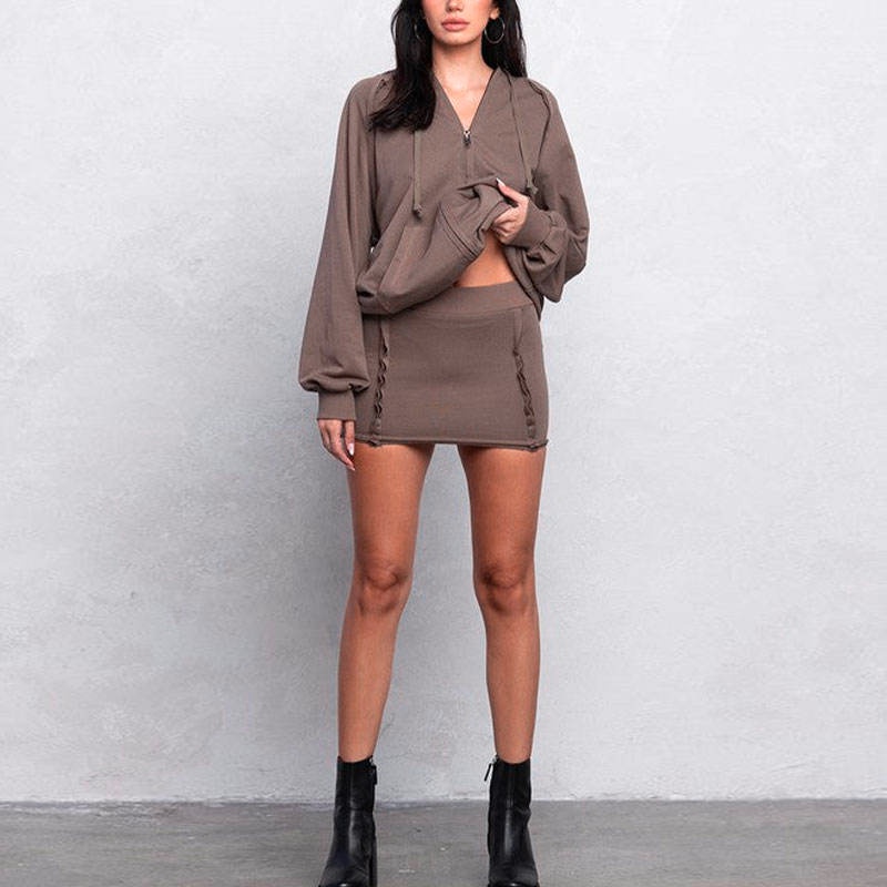 2025 Lightweight Zip-Front Hoodie and Mini Dress Custom Logo Women's Hoodie Set