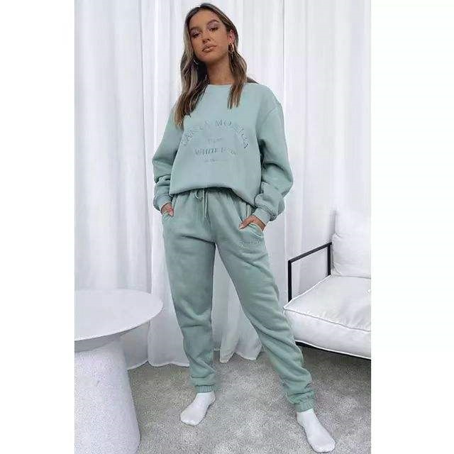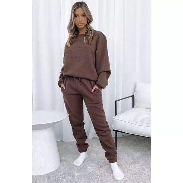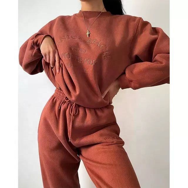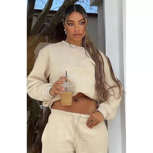 French Terry Hoodie Set | Solid Color Embroidery, Cotton Hoodie and Pants Women's Hoodie Set