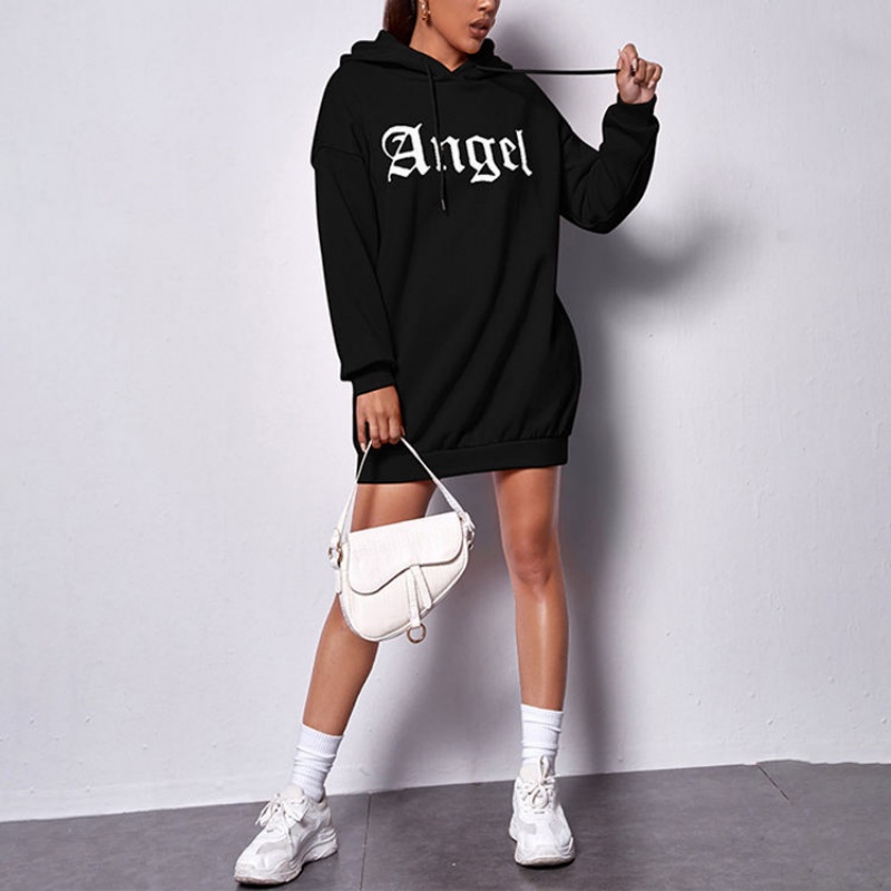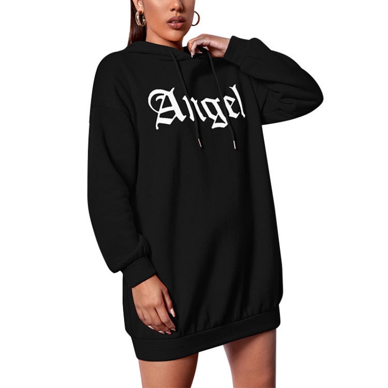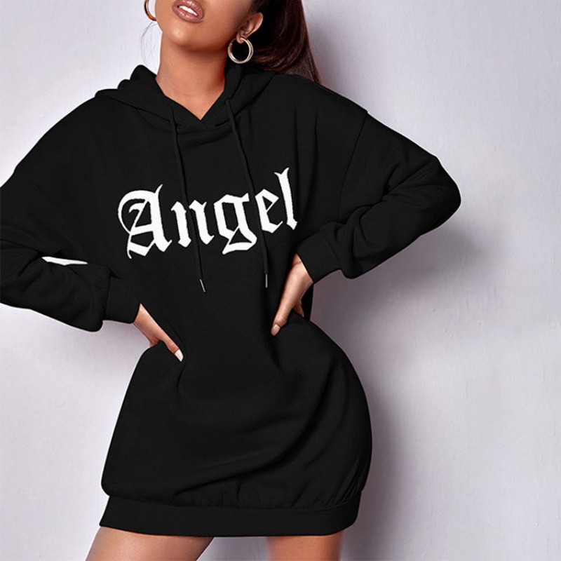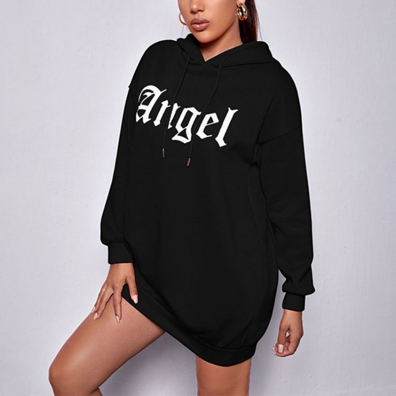 Black Embossed Hooded Dress | Summer Custom Design, Woven Embroidery Women's Hoodie