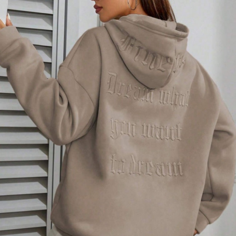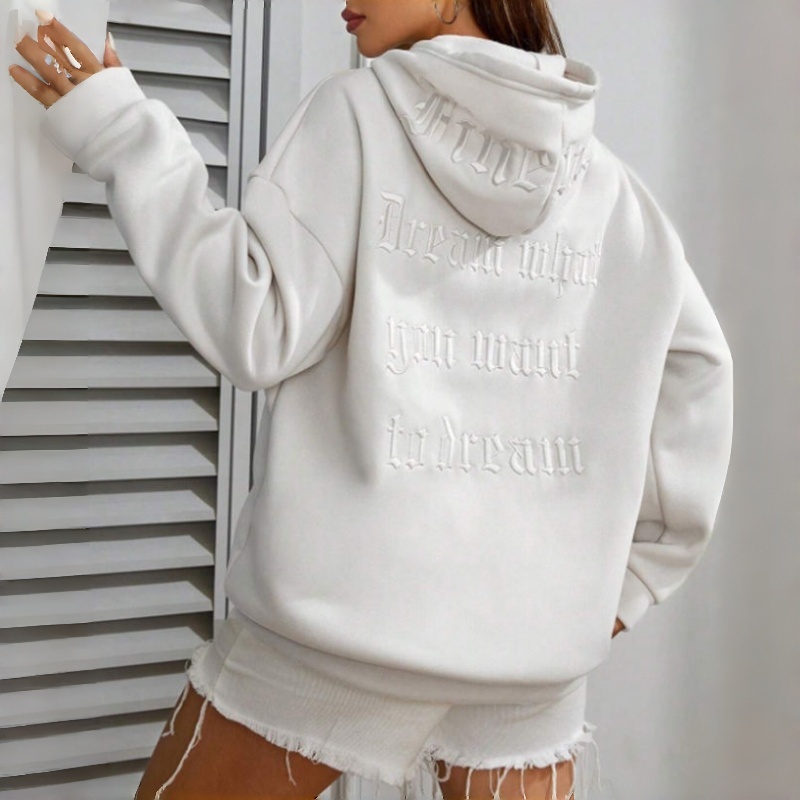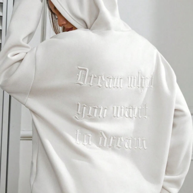 100% Cotton Long Hooded Coat | Street Windproof Style with Embroidery Print Women's Hoodie