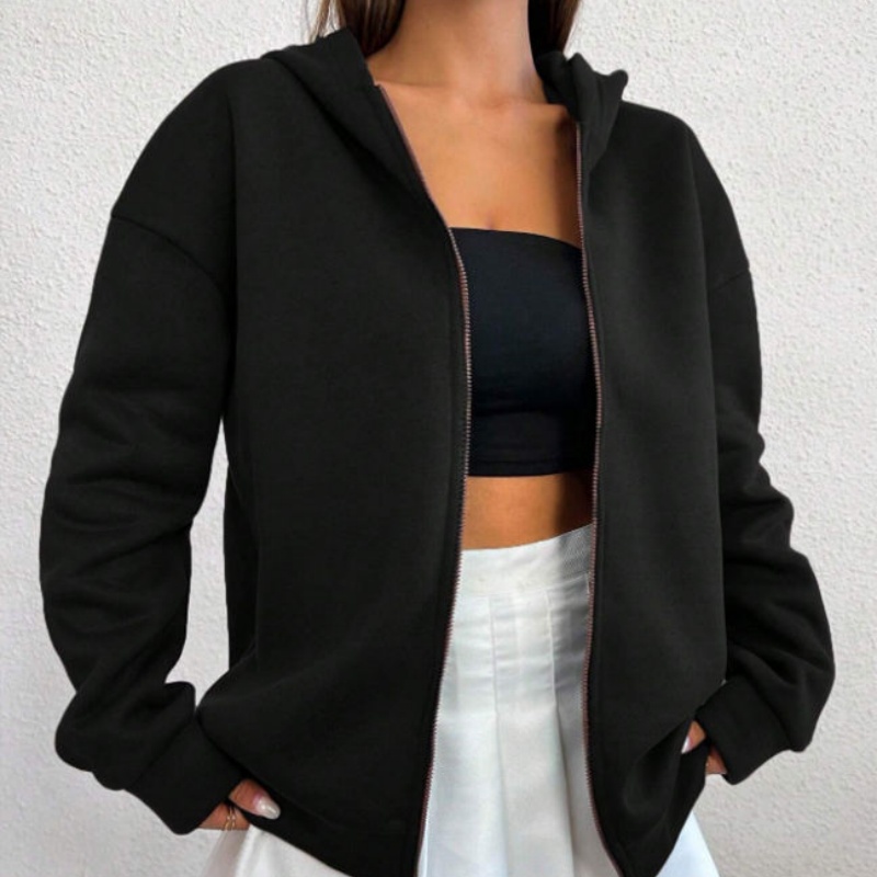 Heavyweight Zip-Up Hoodie | Autumn Drop-Shoulder Knit, Custom Logo, Plush Lining Women's Hoodie