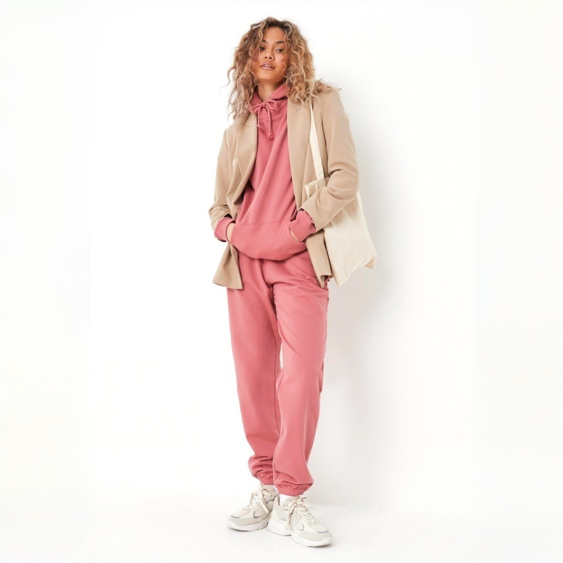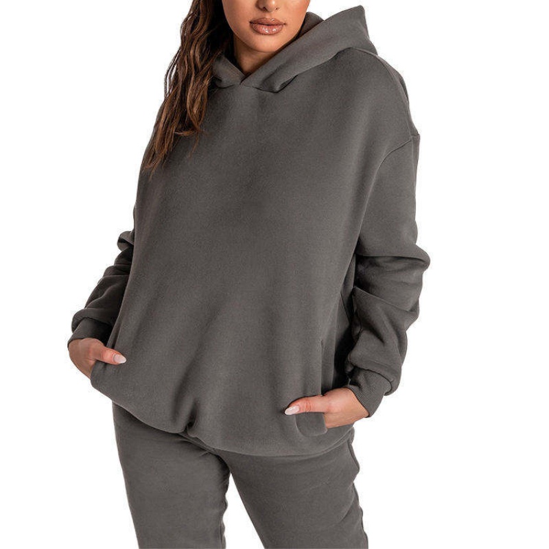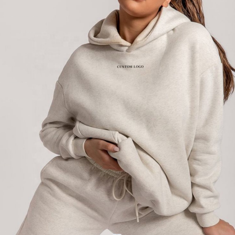 100% Cotton Knit Hoodie Set | Solid Color Embroidery, Loose Oversized Fit Women's Hoodie Set