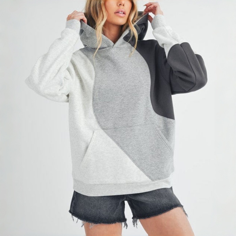 Casual Slouchy Dropped Shoulder Stretchy Kangaroo Full Coverage Color Block Winter Autumn Women's Hoodie