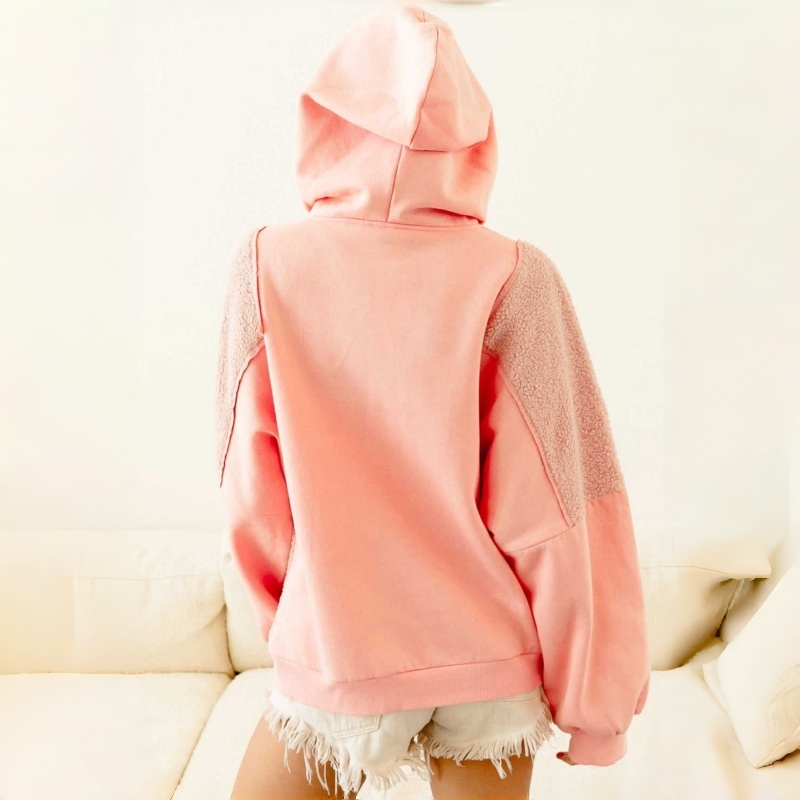 Pink Pullover Heavy Fleece Embroidered Drawstring Kangaroo Pocket Casual Block Design for Winter Season Women's Hoodie