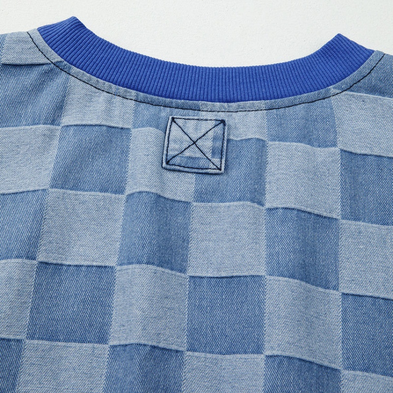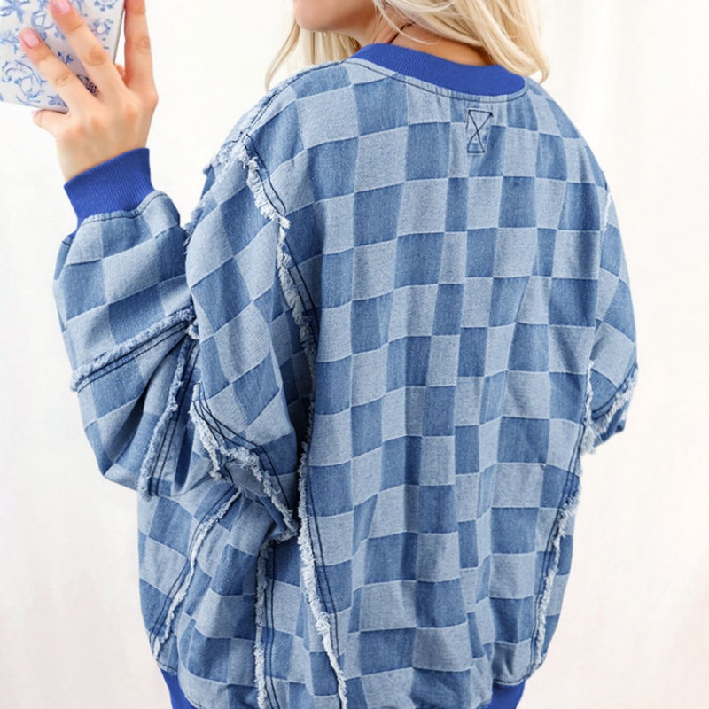 High Quality Women's Oversized Pullover Acid Washed Checkered Sweatshirt Streetwear Knitted Women's Hoodie