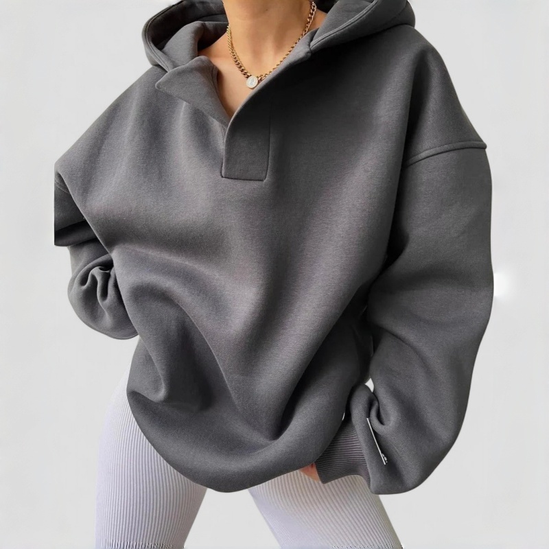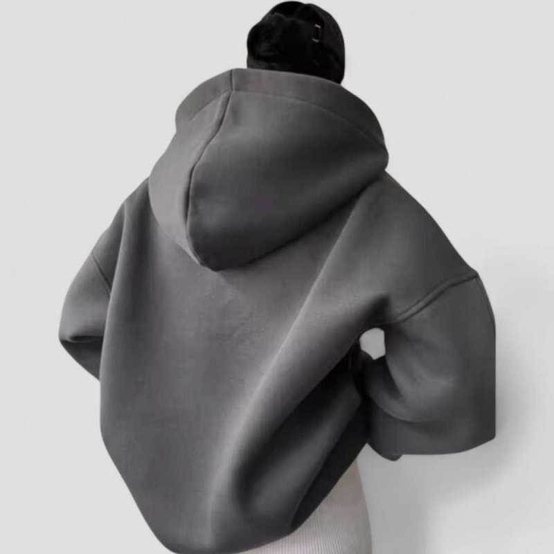 Beige Solid Color Open Front Long Sleeve Casual Hoodie for Winter Autumn Women's Hoodie