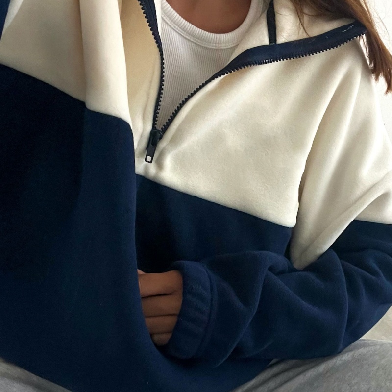 Half Zip Color Block Fleece Oversized Long Sleeve Casual Pullover Women's Hoodie