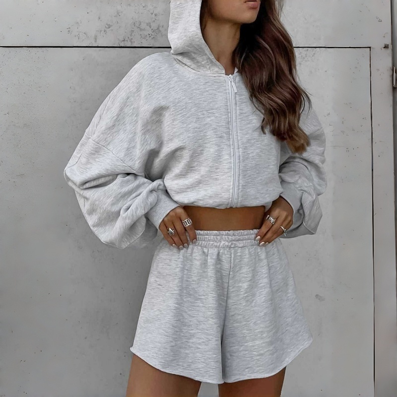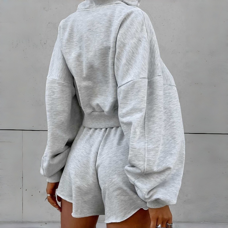 High Quality Long Sleeves Soft Cotton Custom Bulk Corpped Zip-Up Printed Autumn Badge Women's Hoodie Set