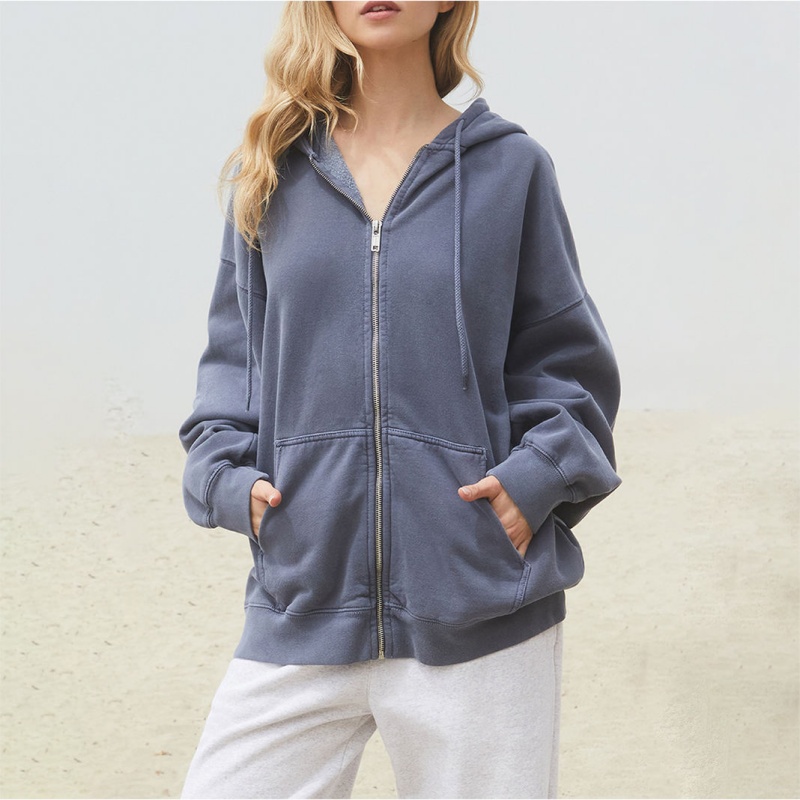 Premium Quality Washed Oversized Drop Shoulder Zip up Vintage Streetwear Loose Fit Women's Hoodie