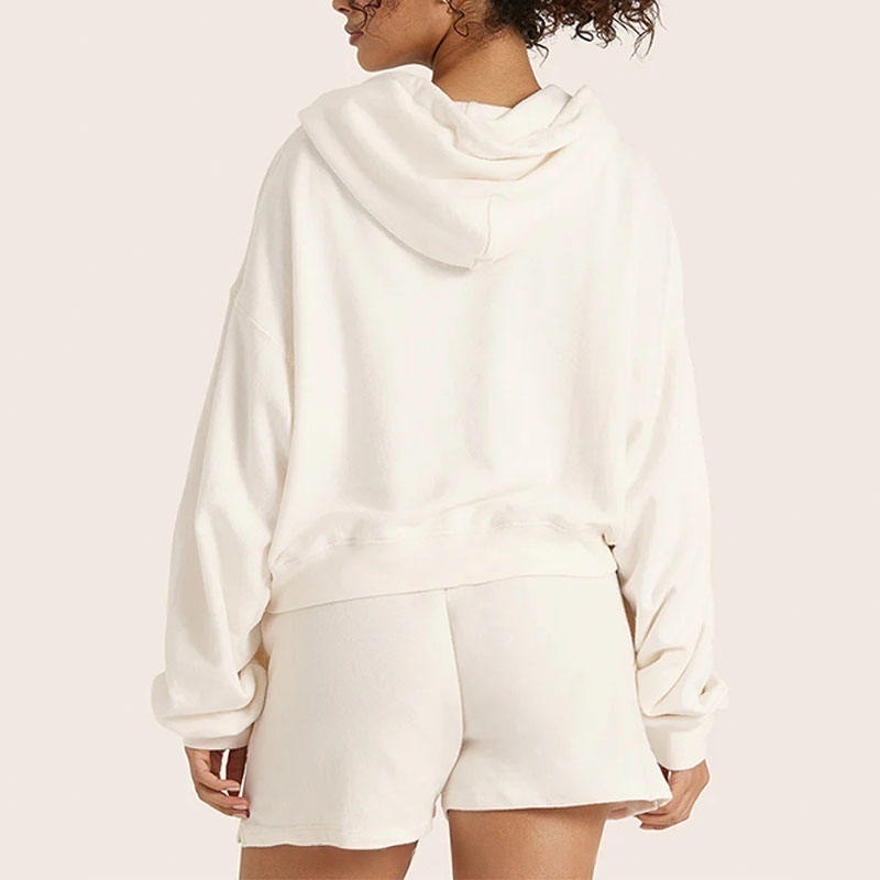 Logo Plain 100% Cotton Oversized Jogger Shorts Women 2 Piece Sweat Suit Cropped Zip up Hoodie and Shorts Women's Hoodie Set