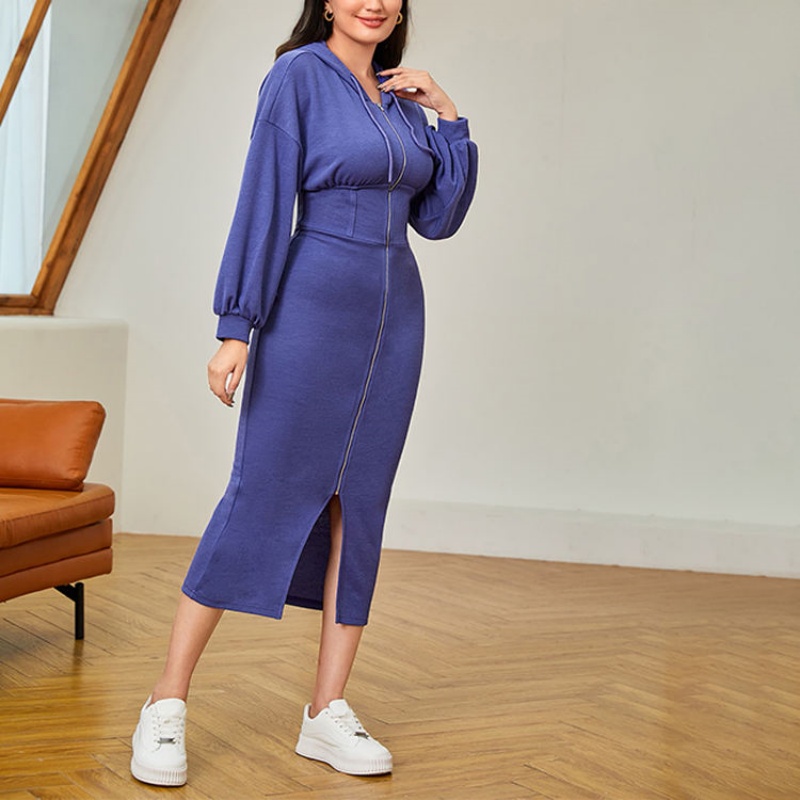 Slit Long Sleeve Hooded Dress Women's Custom Casual Style Women's Hoodie