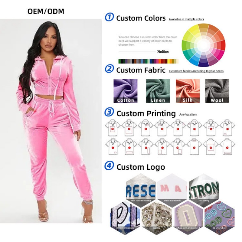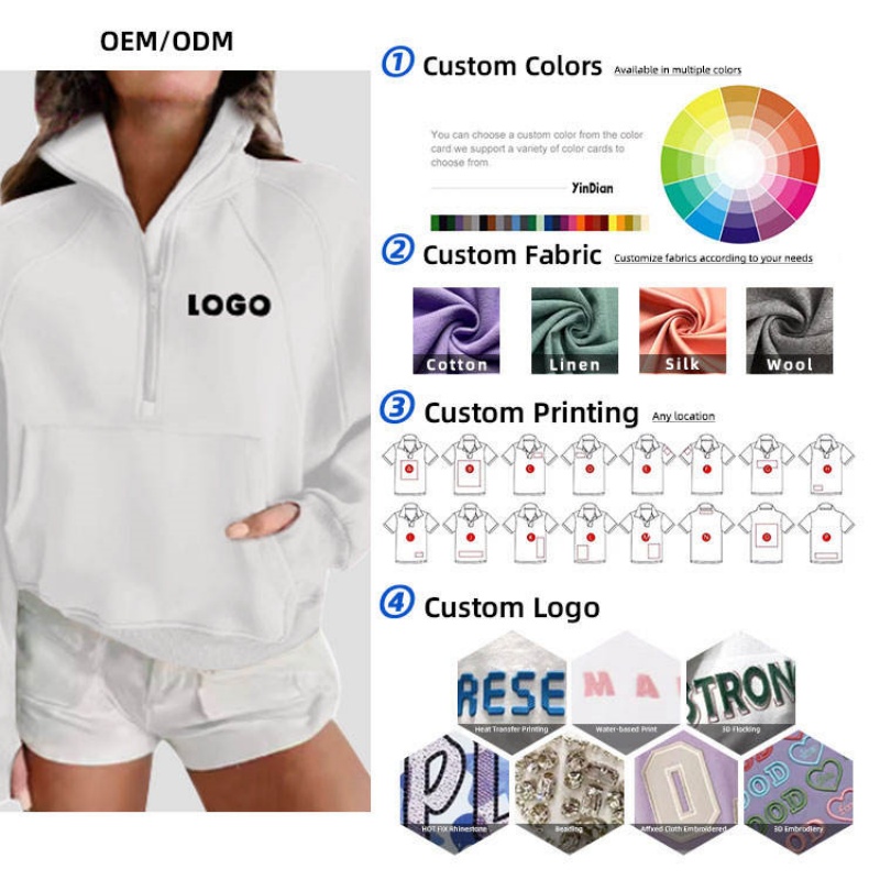 Cotton Half-Zip Hoodie Cropped Knit Set Custom Print Women's Hoodie