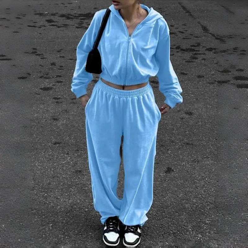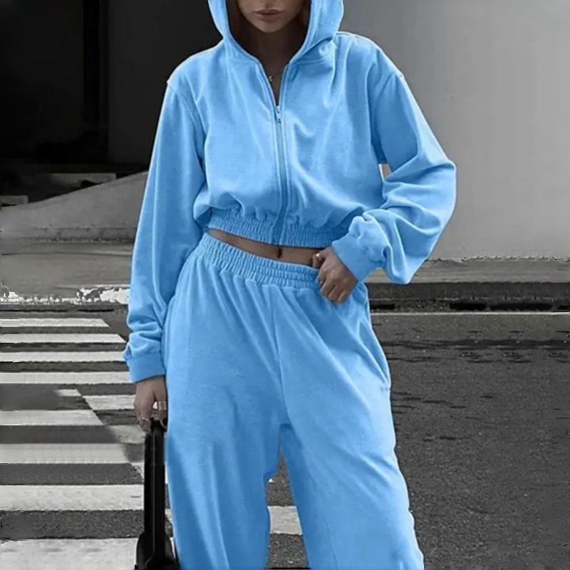 2025 Crop Top Sets 2 Pieces Sweatpants and Casual Custom logo Women Jogging Suits Blank Jogger Women's Hoodie Set