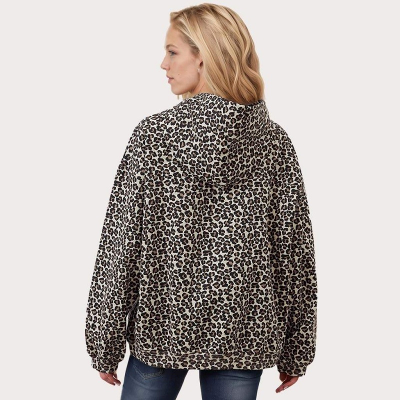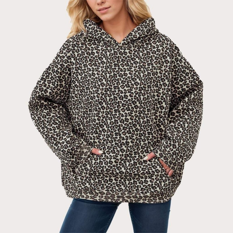 Embroidered Leopard Print Oversized Animal Pattern Winter/Autumn Trendy Streetwear Sweatshirt Women's Hoodie