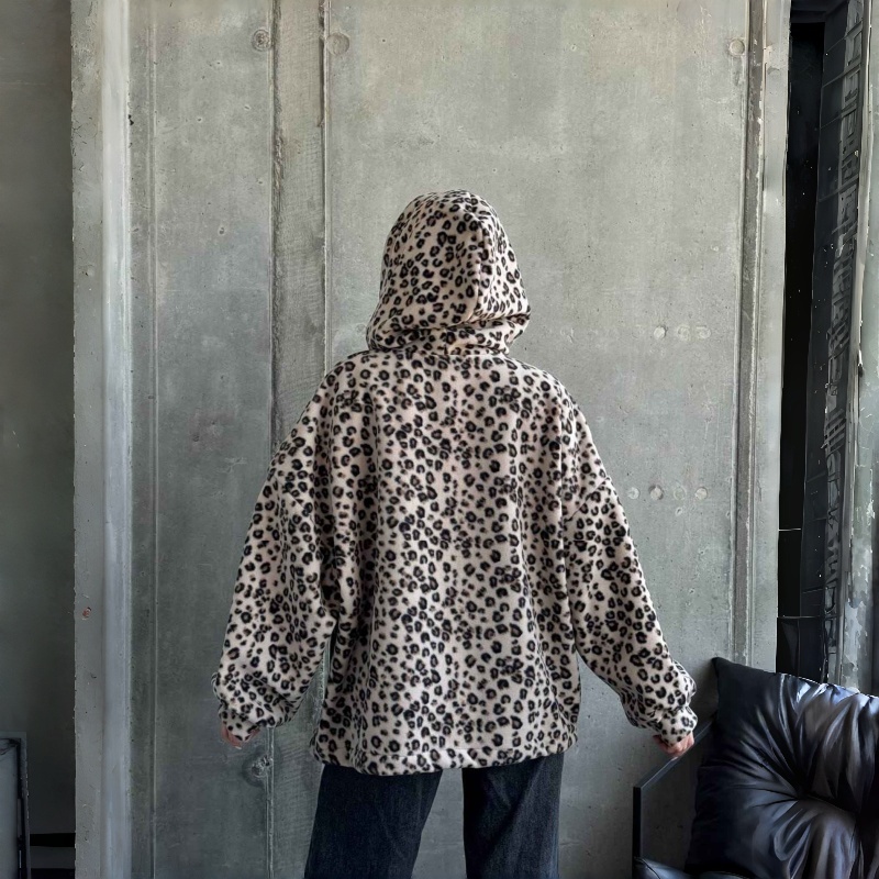 Custom Classic Leopard Oversized Heavyweight Fleece Pullover Animal Print Hooded Sweatshirt Women's Hoodie