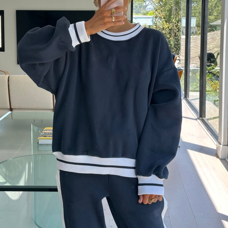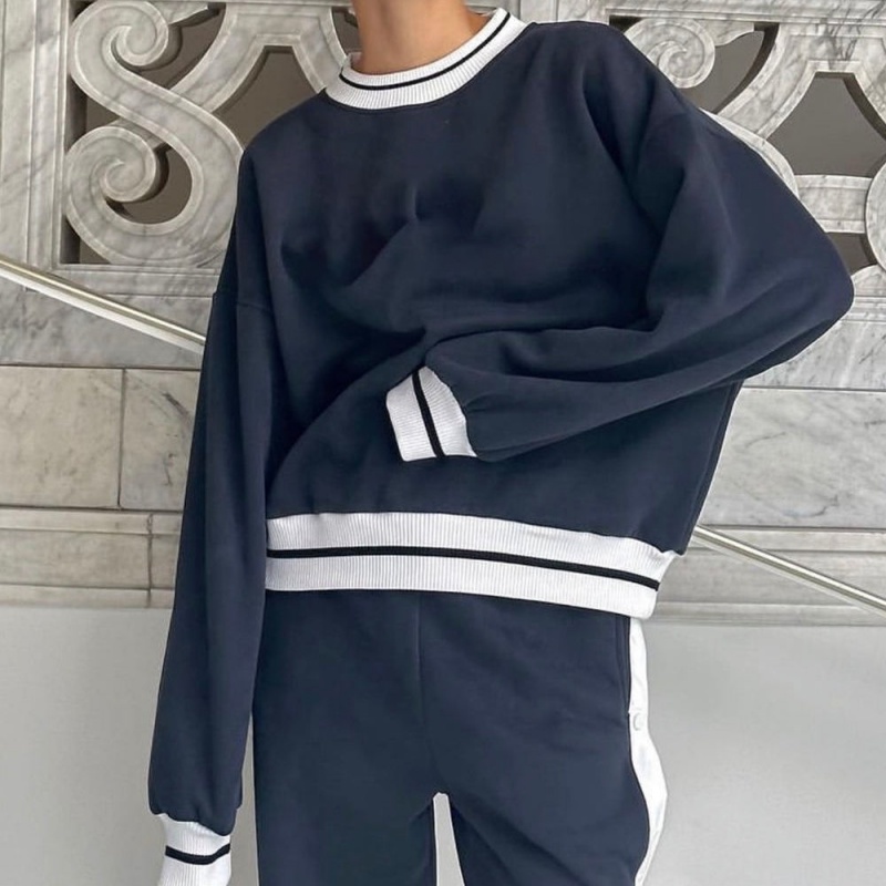 Custom Logo White Striped Rib Cuffs 100% Cotton Loose Fit Oversized Printed Casual Wear for Autumn Women's Hoodie Set