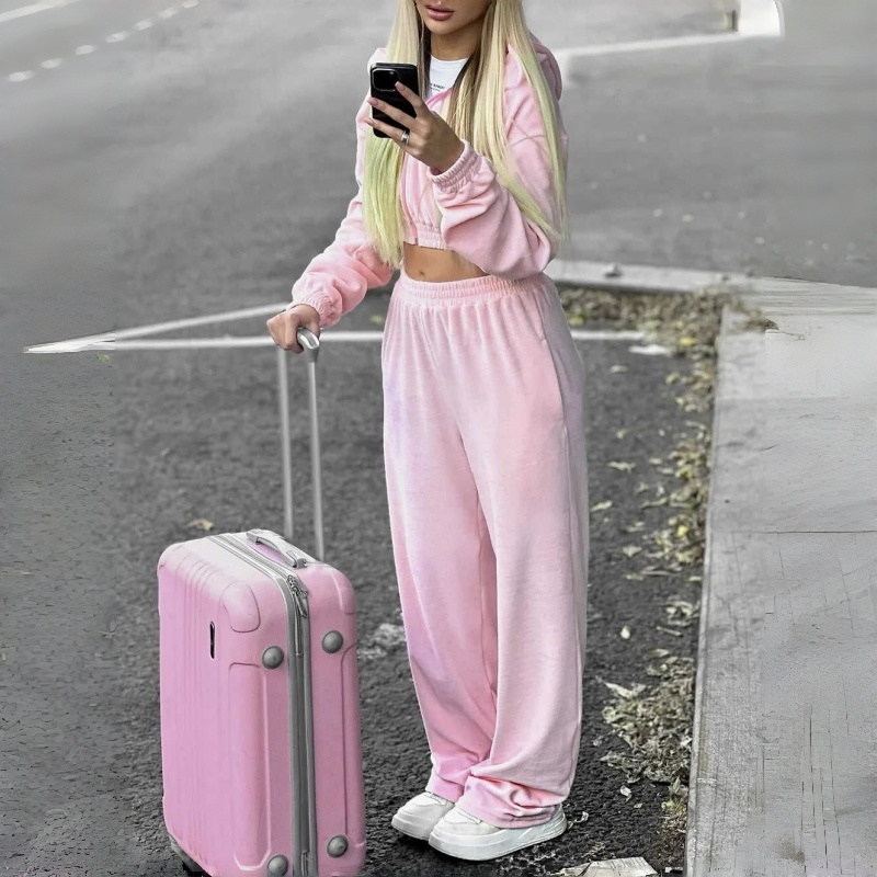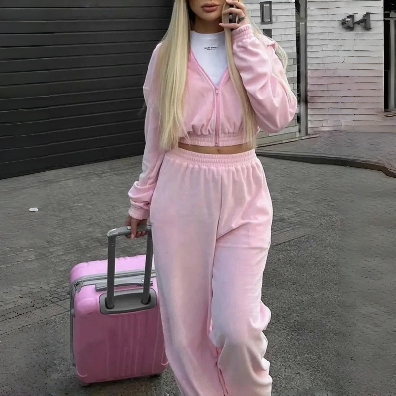 Wholesale 2 Pieces Daily Wear Tracksuit Custom logo Cozy Full Length Sweatpants and Crop Top Full Zip up Women's Hoodie Set