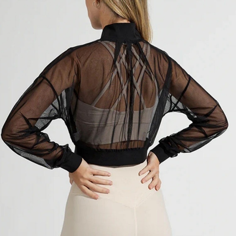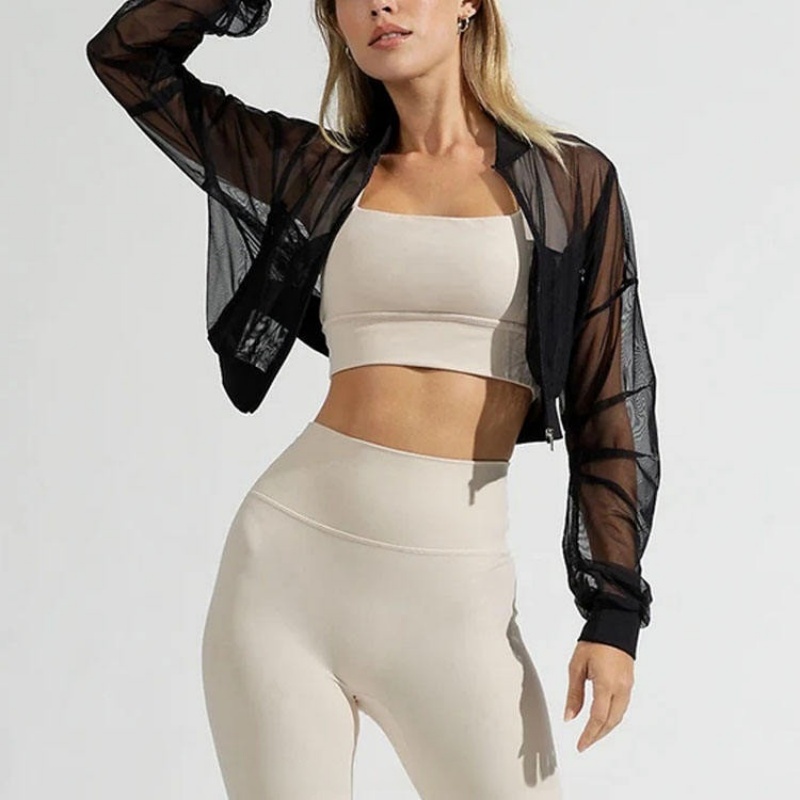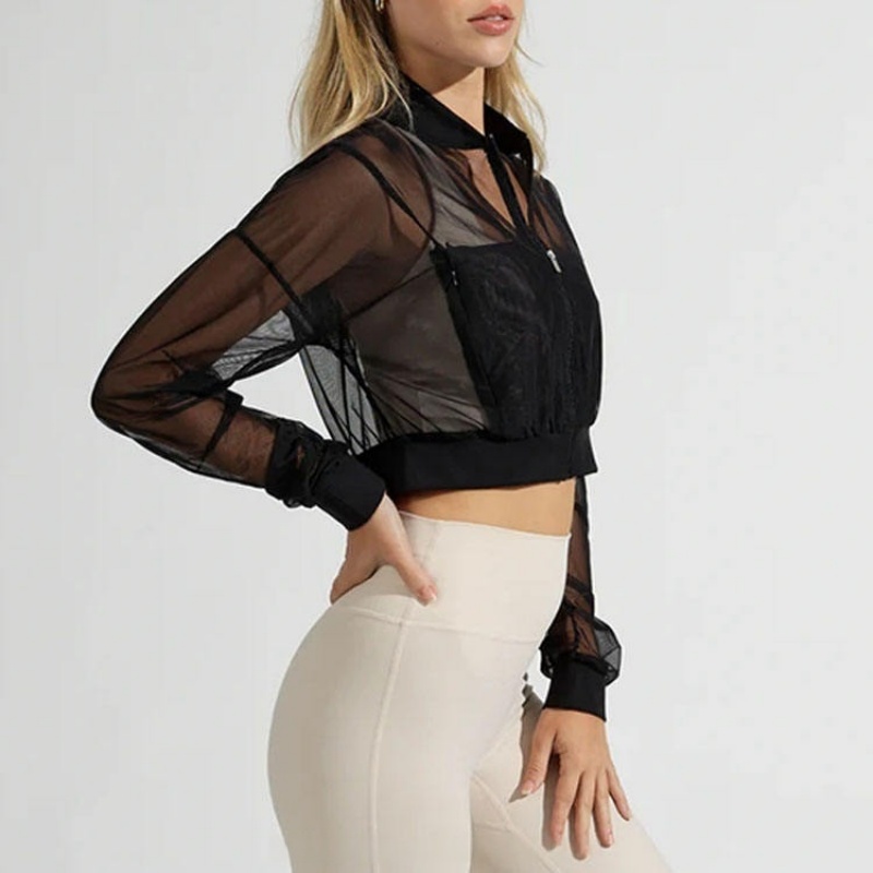 Breathable Polyester Spandex Fitness Mesh Long Sleeve Front Zip Pocket Women's Hoodie