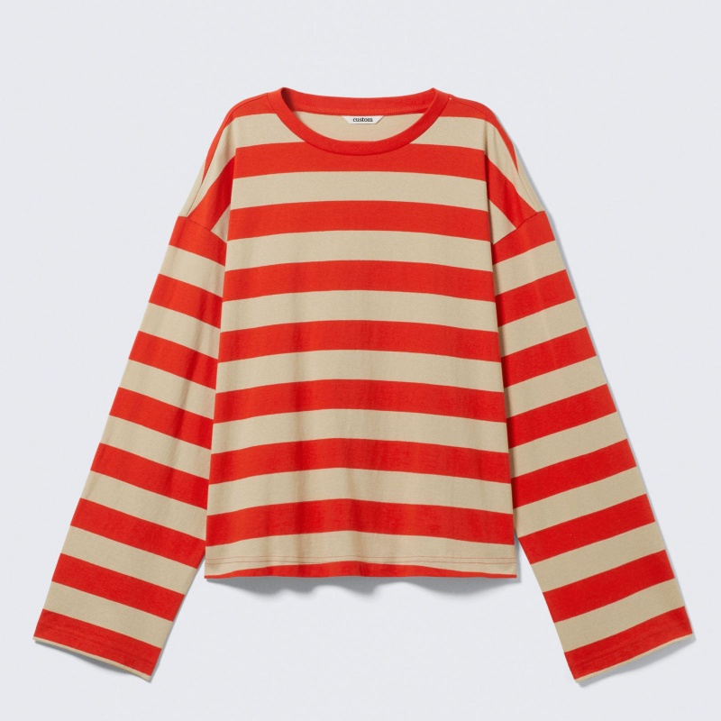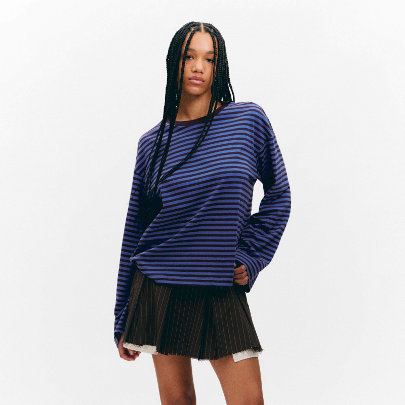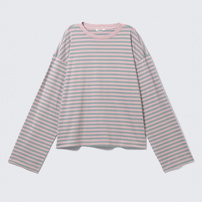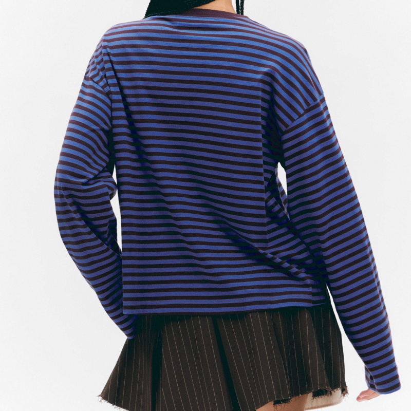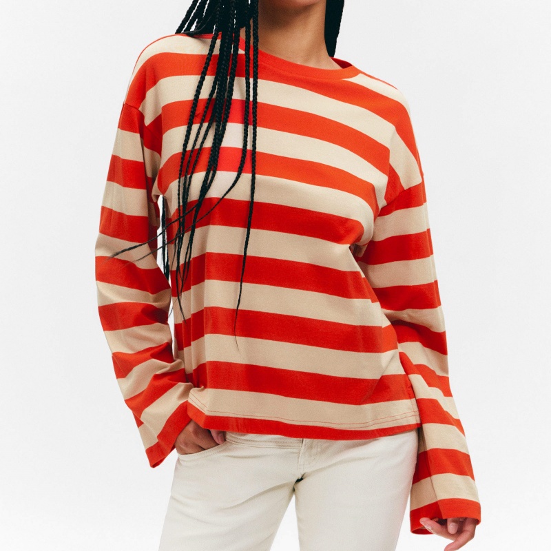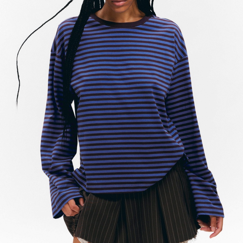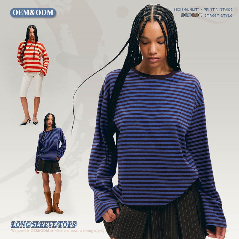 Colorblock Stripe T-Shirt 100% Cotton Round Neck Long Sleeve Casual Women's Hoodie