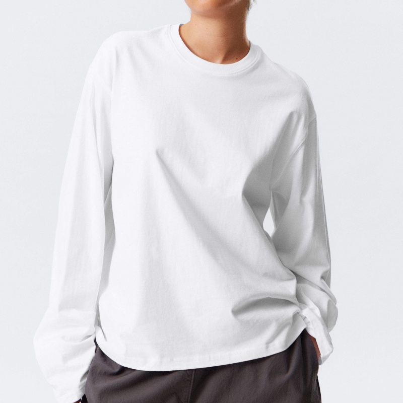 100% Cotton Long Sleeve T-Shirt White Loose High Quality Wholesale Women's Hoodie