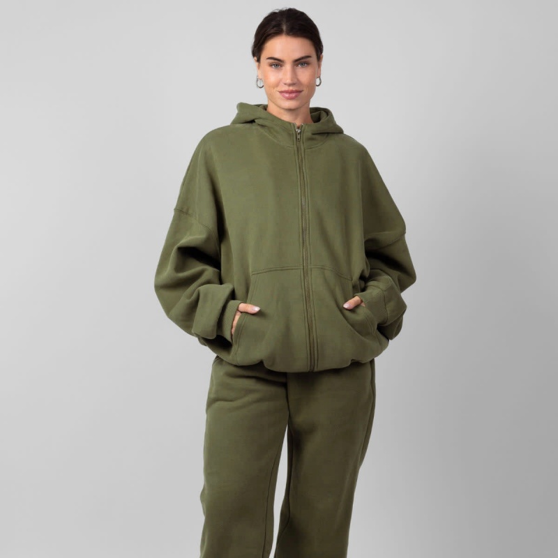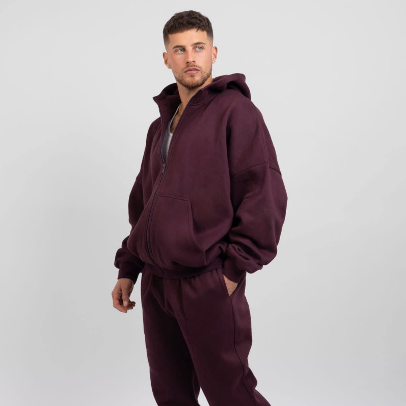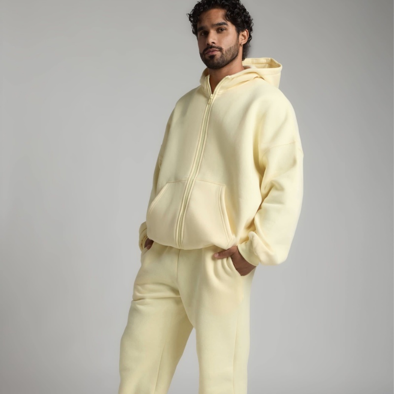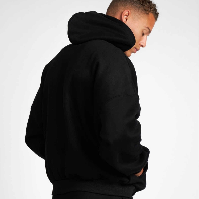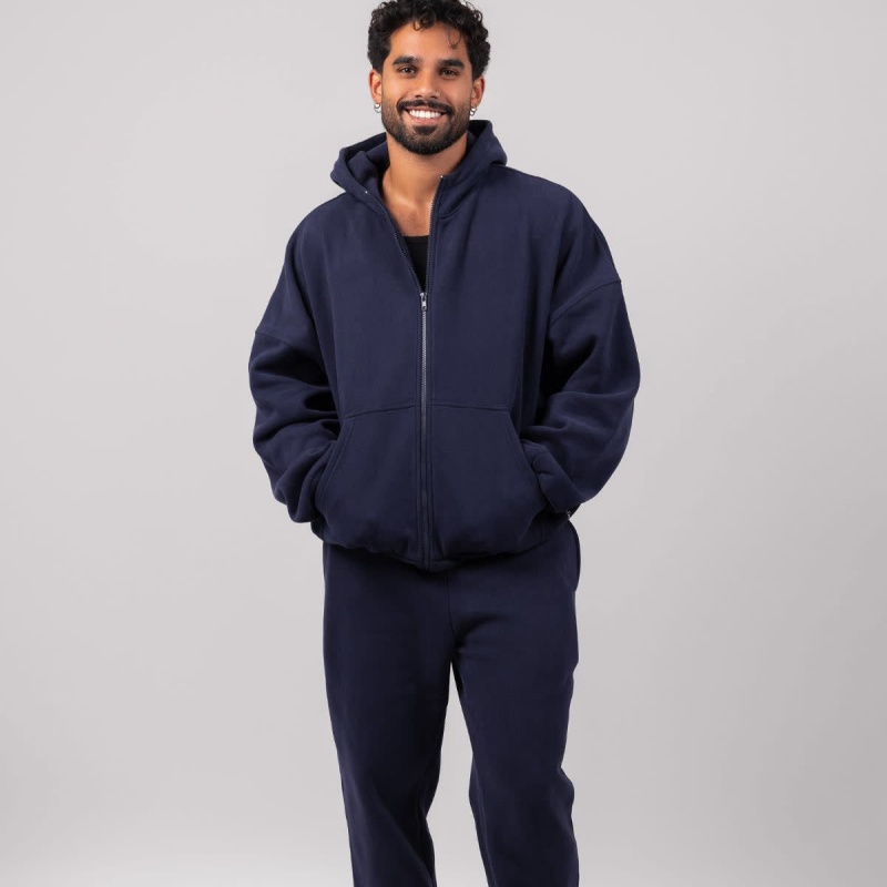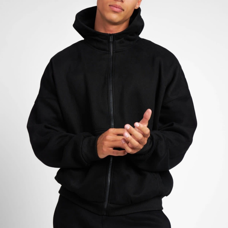 Unisex Black Wool Hoodie Set Heavyweight Zip-Up Hoodie Print Design Women's Hoodie Set