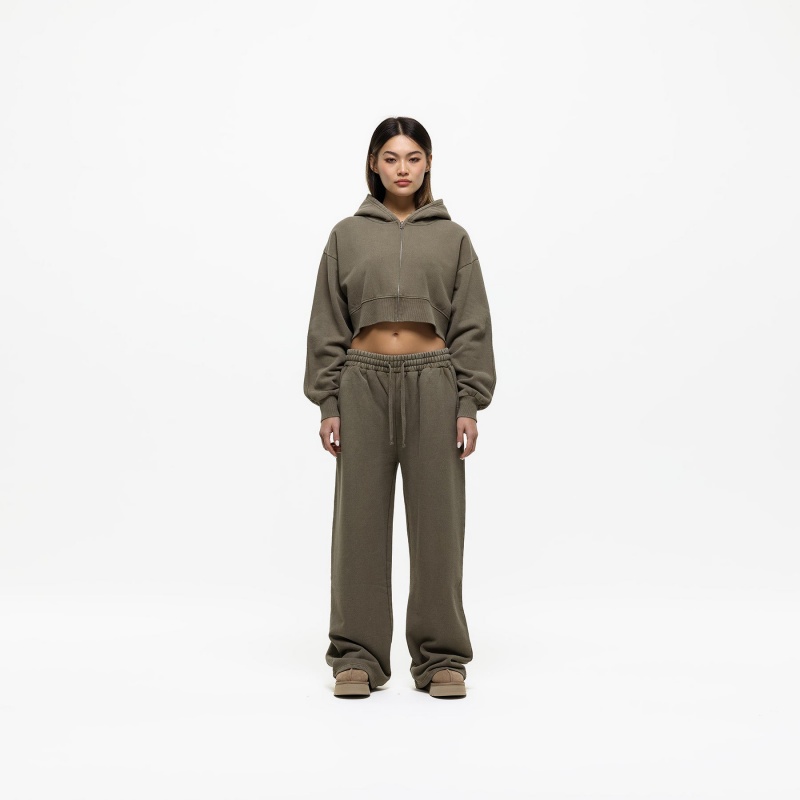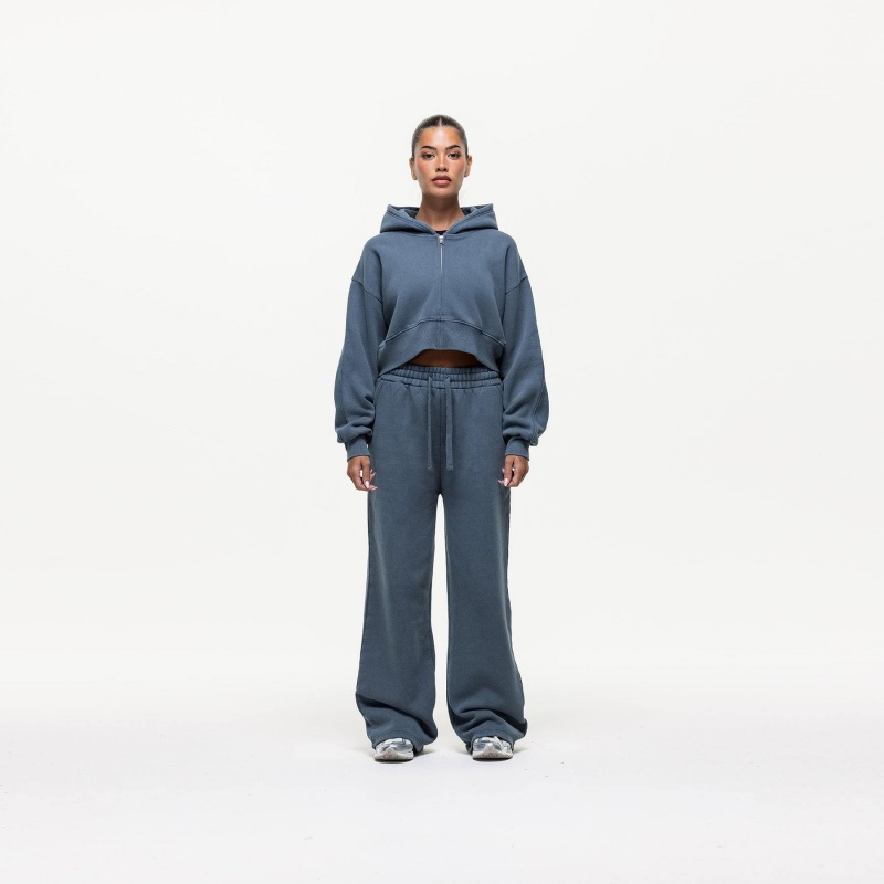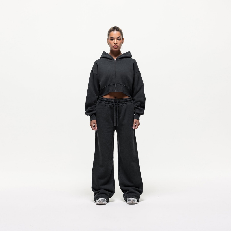 Vintage Wash Hoodie Set Acid Wash Zip-Up Embroidered Joggers Wholesale Women's Hoodie Set