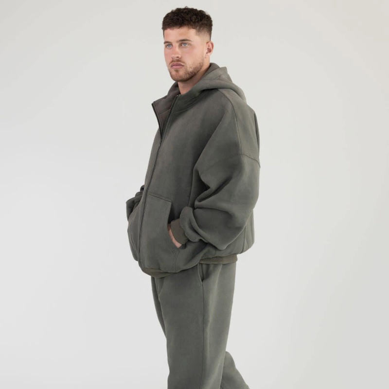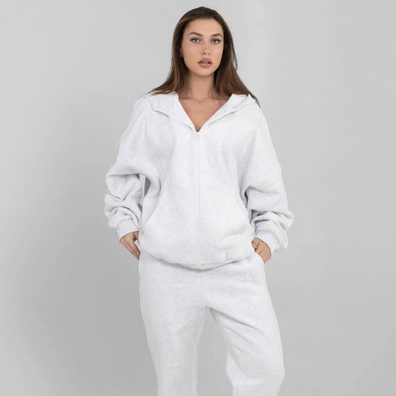 Unisex Black Heavyweight Hoodie Set Winter Oversized Zip-Up 2 Sets Wholesale Women's Hoodie Set
