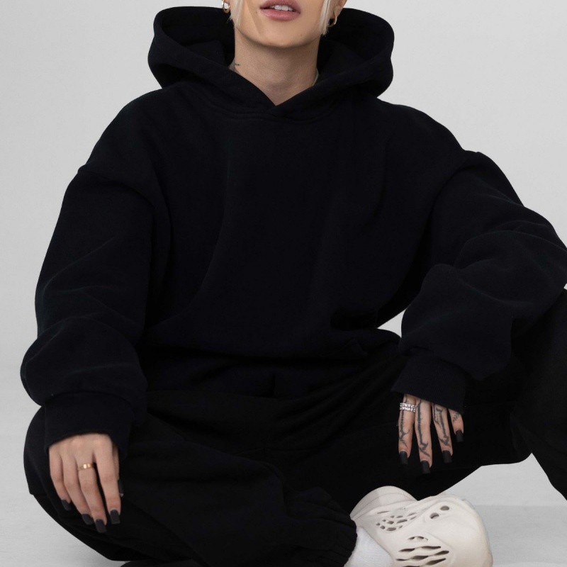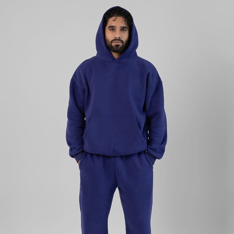 Unisex Embossed Hoodie Set 500-600gsm Cotton Wool Blend Square Cut Women's Hoodie Set