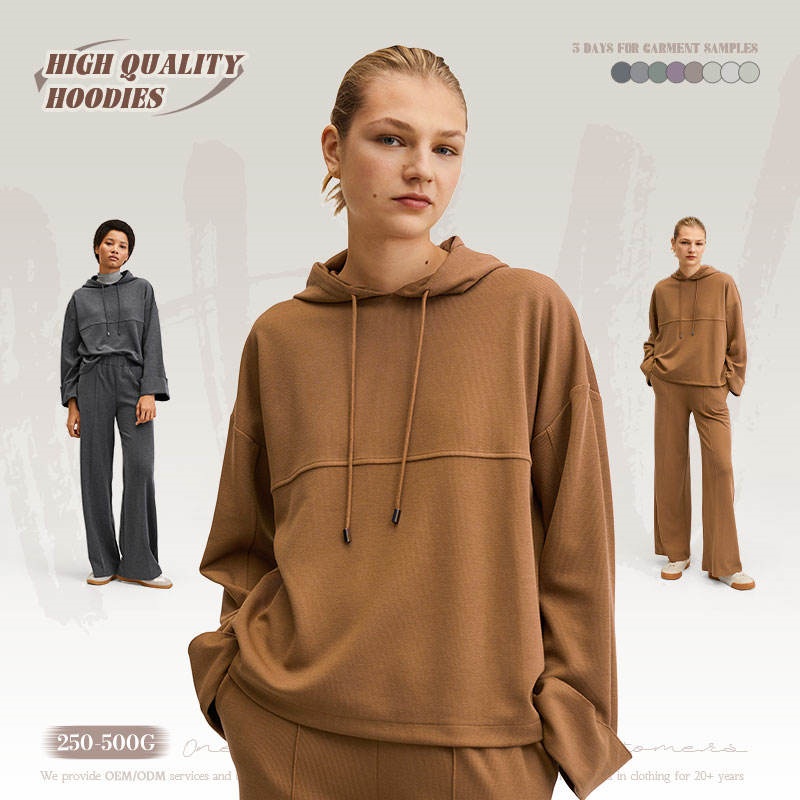 Hot Sale Brown Hoodie Set Spring Autumn Oversized Embroidered Jogging 2-Piece Women's Hoodie Set