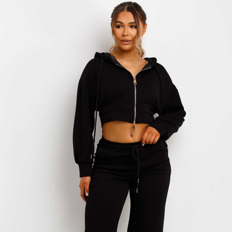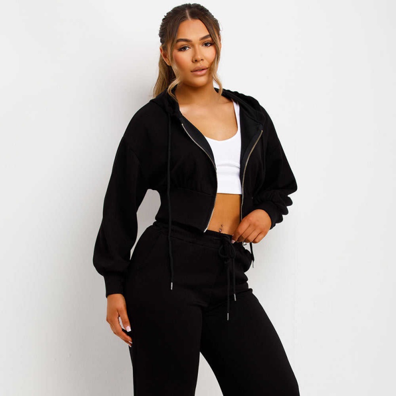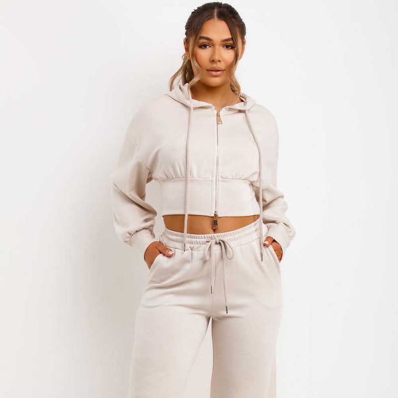 Cotton Casual Hoodie Set Zip-Up Hoodie Wide-Leg Pants 2-Piece Women's Hoodie Set
