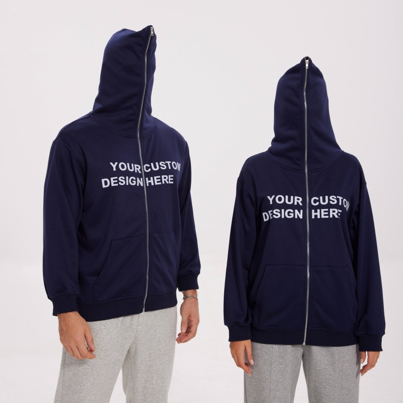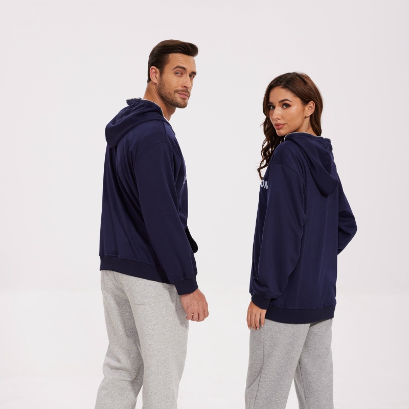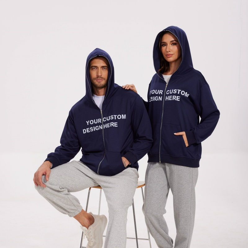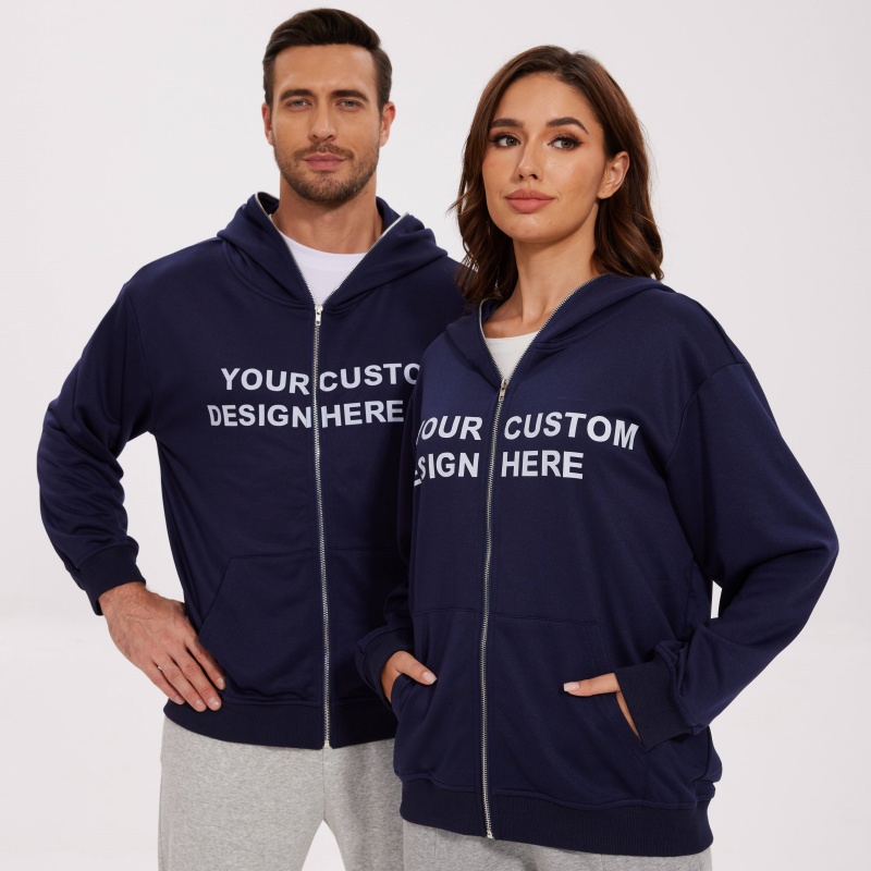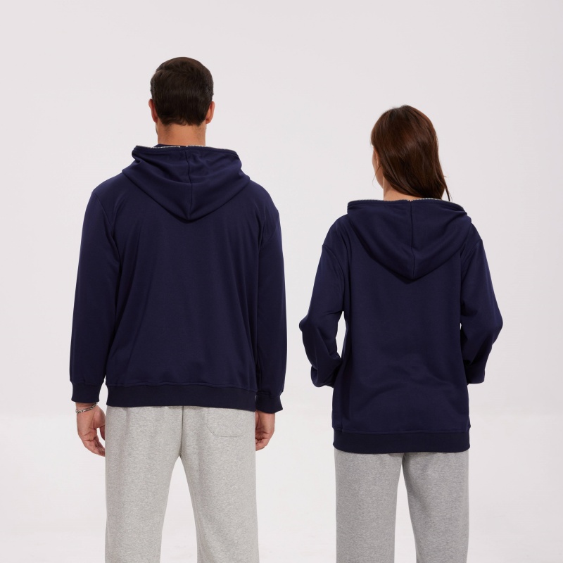 Unisex Blue French Terry Hoodie Full Face Zip Spring Autumn Blank Women's Hoodie