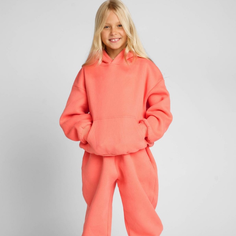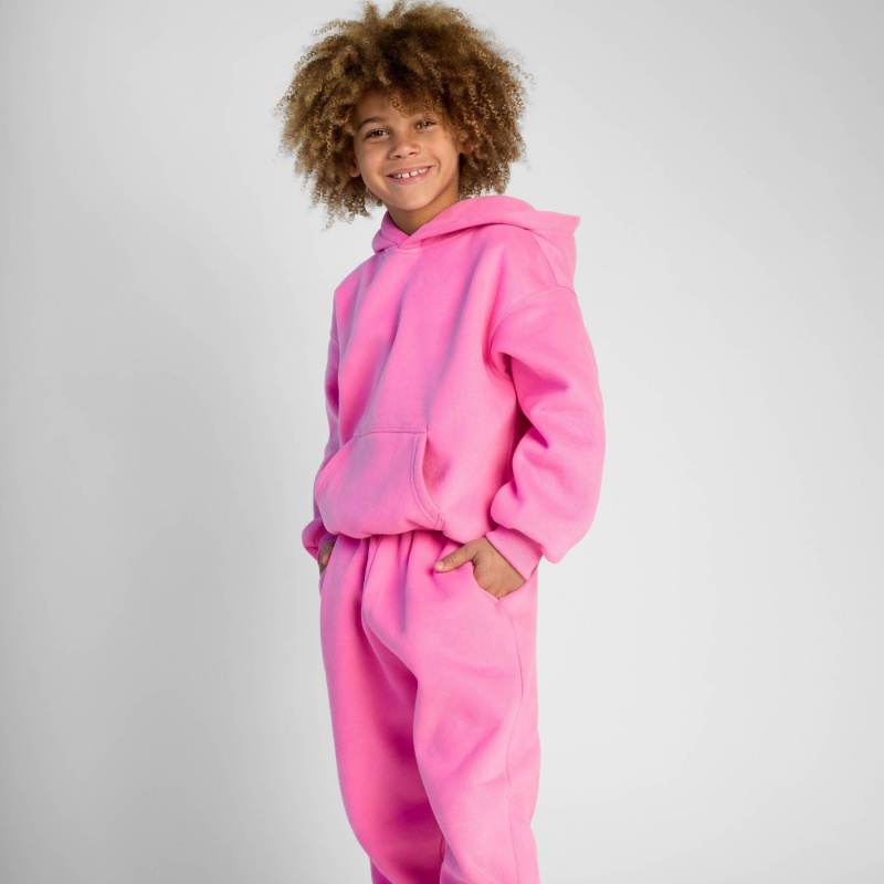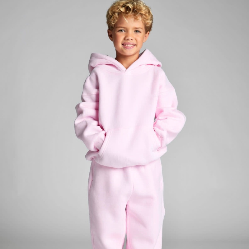 Kids Pink Steel Embossed Hoodie Set 3D Printed Cotton Polyester Kangaroo Pocket Women's Hoodie Set