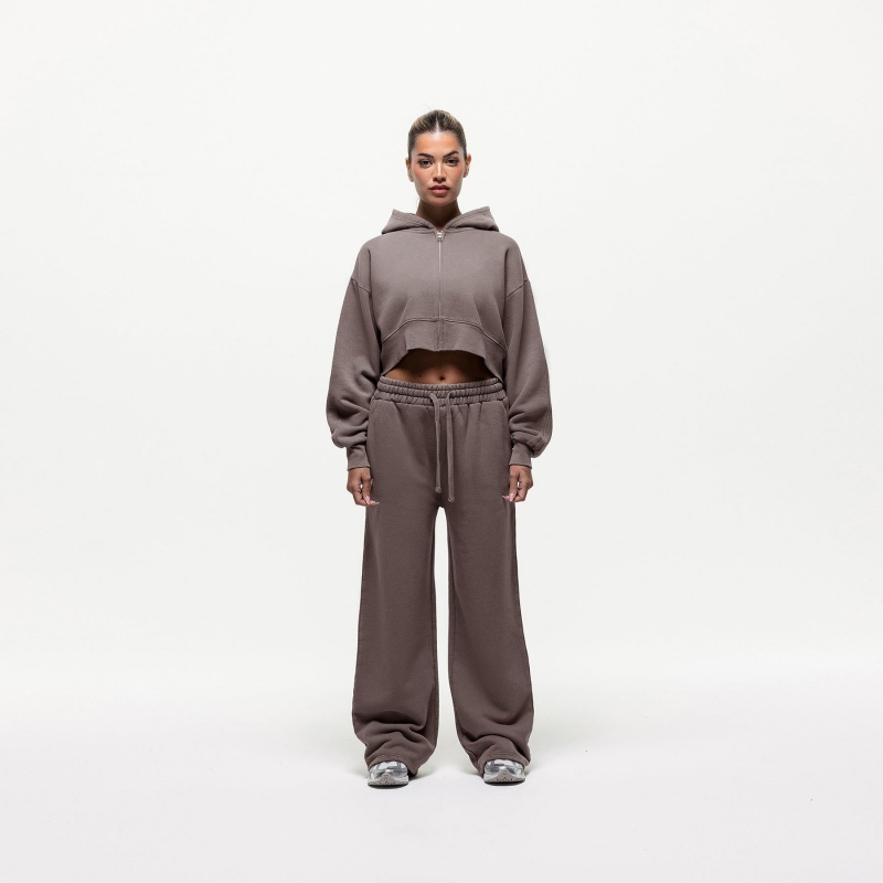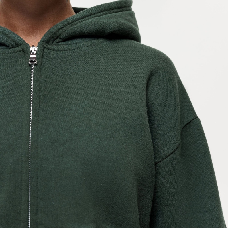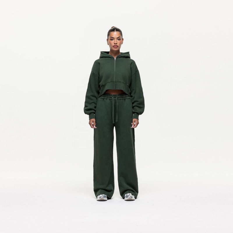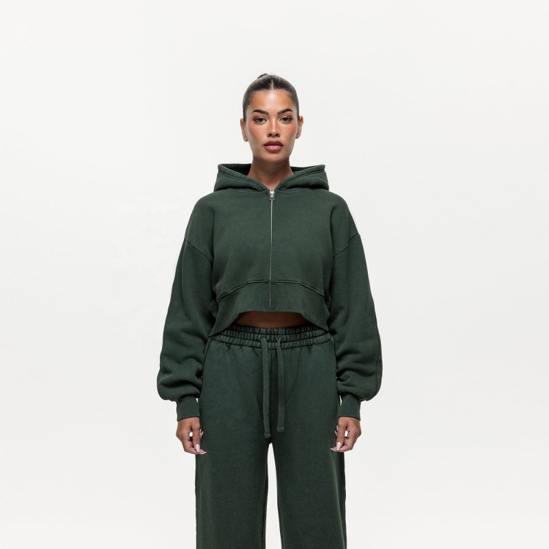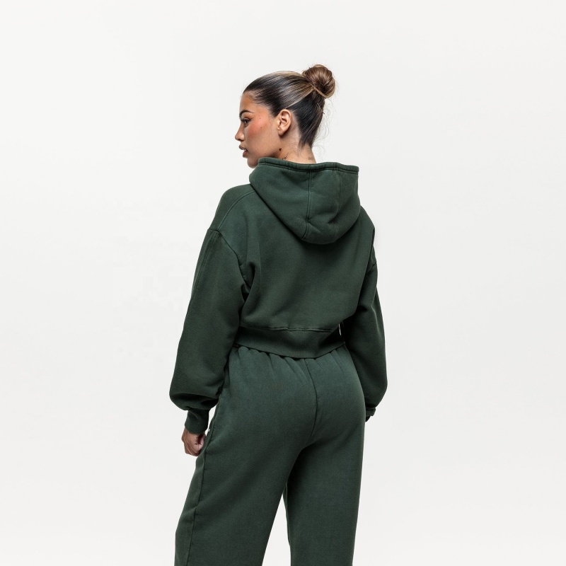 Vintage Wash Hoodie Set Green Crop Zip-Up Hoodie Women's Hoodie Set