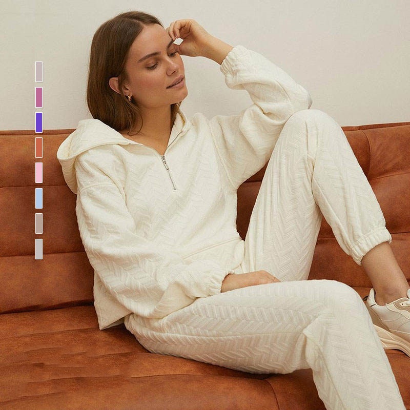 Knit Training Hoodie Set Autumn Winter Jogging Custom Logo Women's Hoodie Set