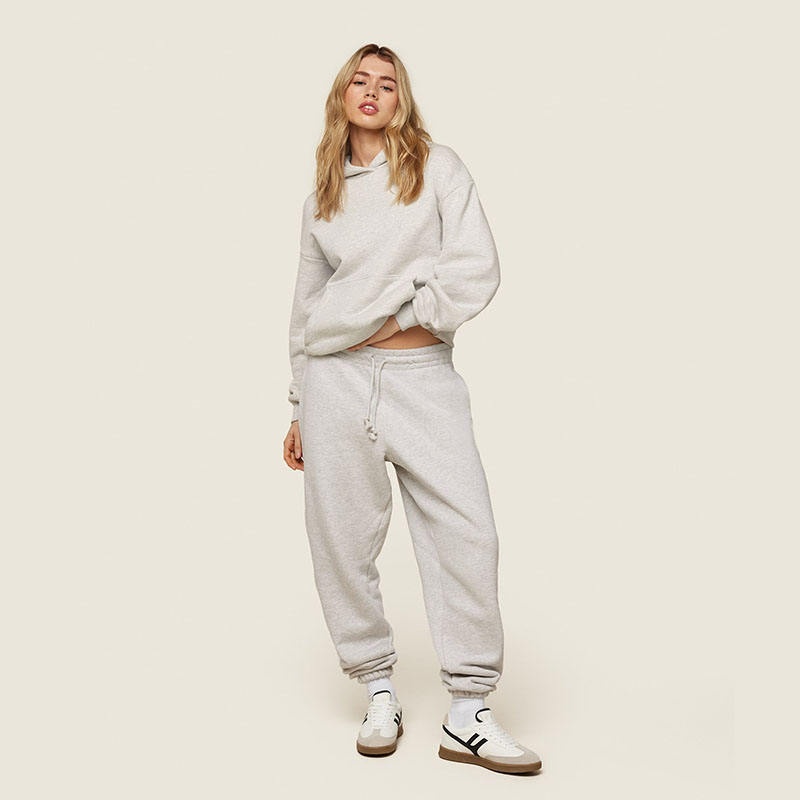 Solid White Heavyweight Hoodie Set Winter Hooded Joggers 2-Piece Women's Hoodie Set