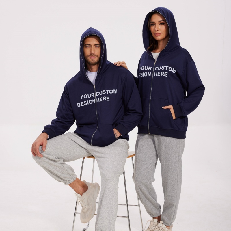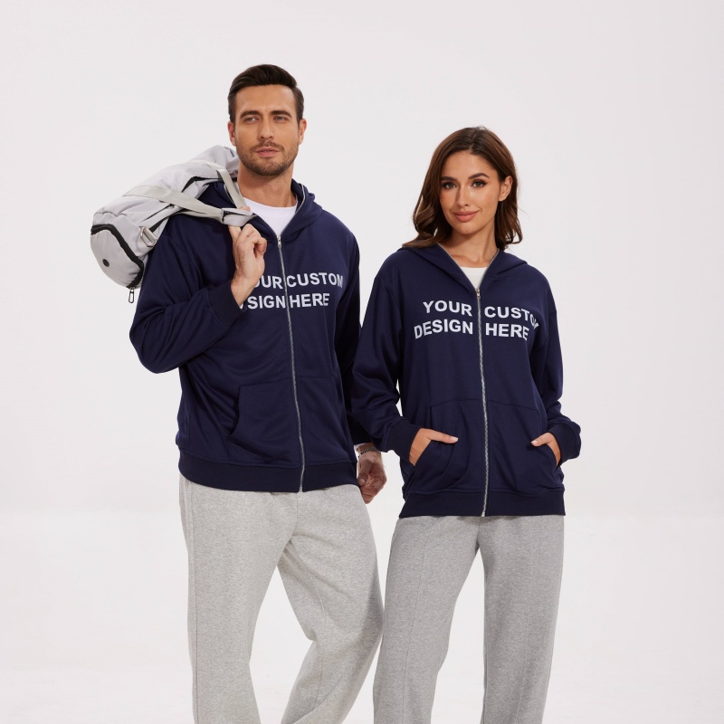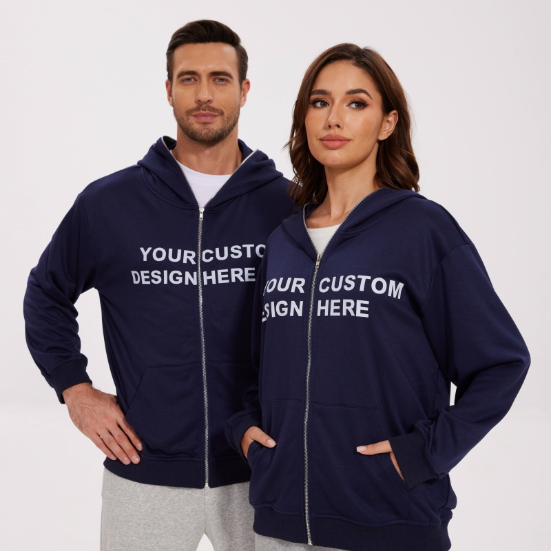 Unisex Lightweight Hoodie Blue Full Zip Embroidery Spring Autumn Women's Hoodie