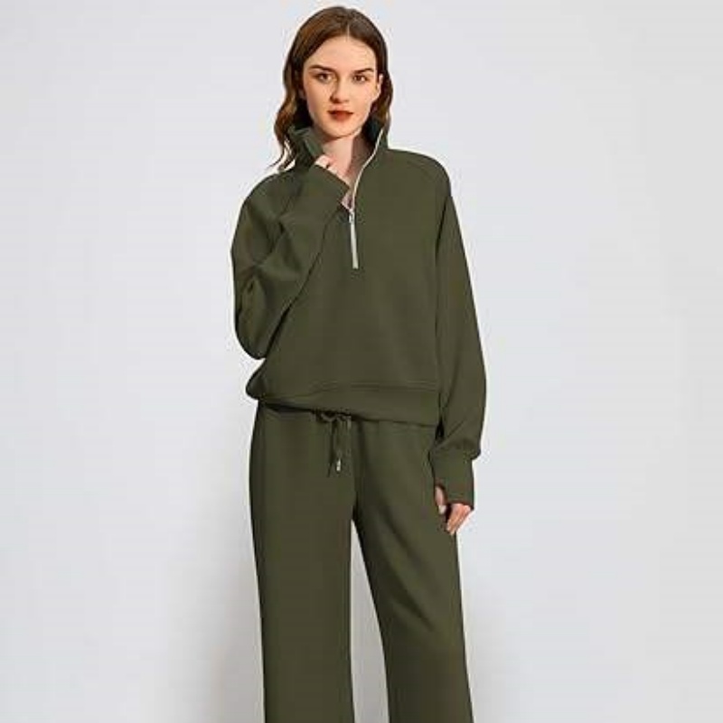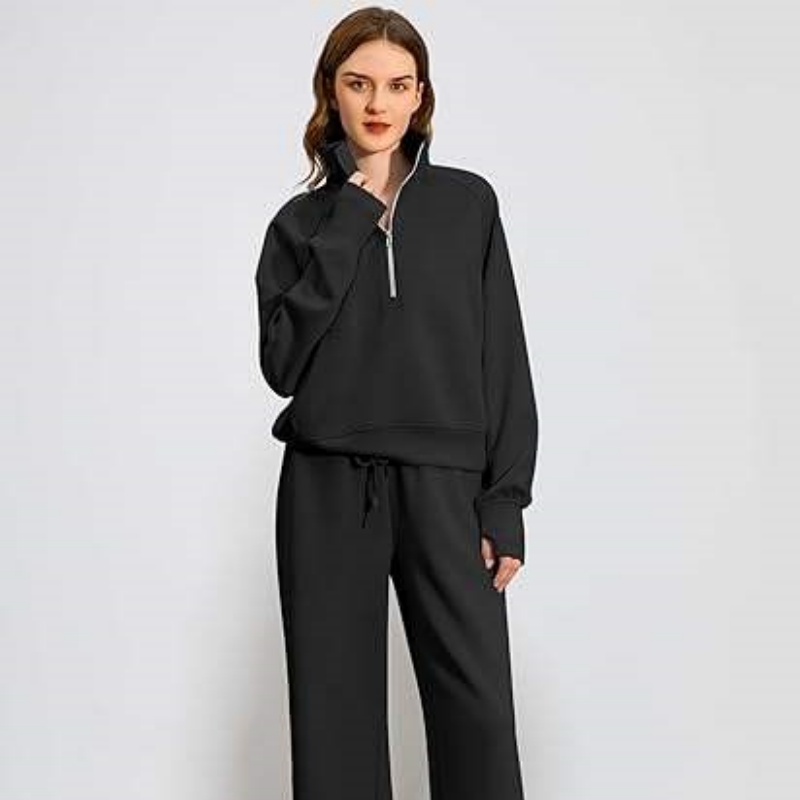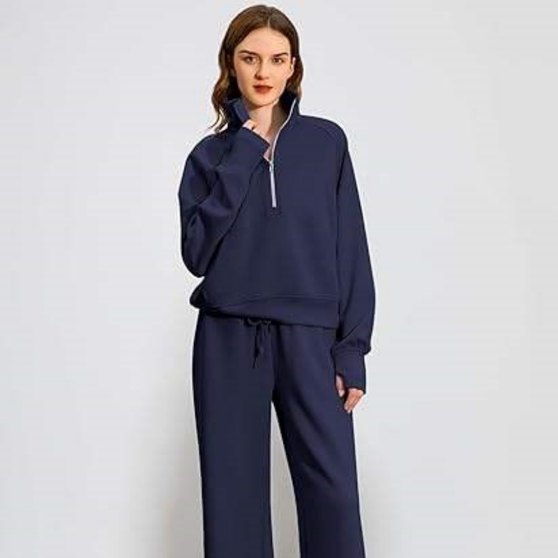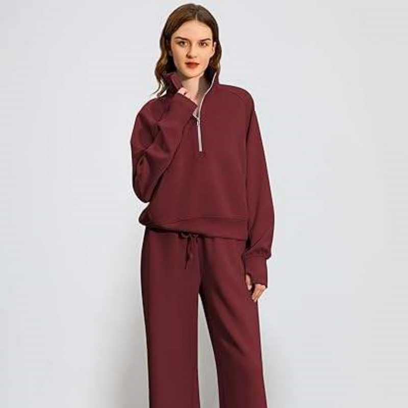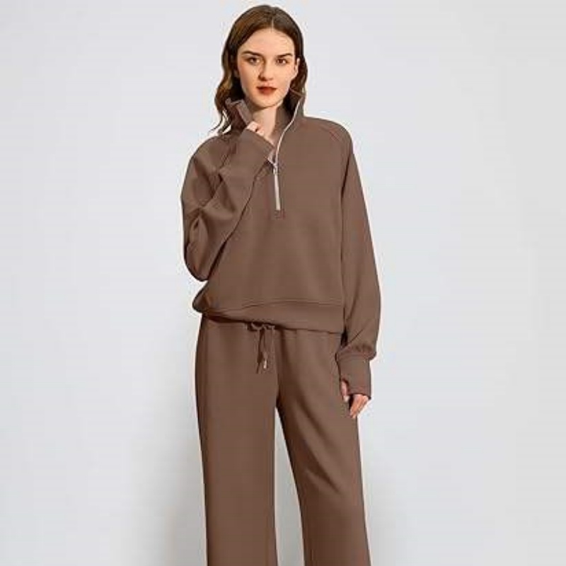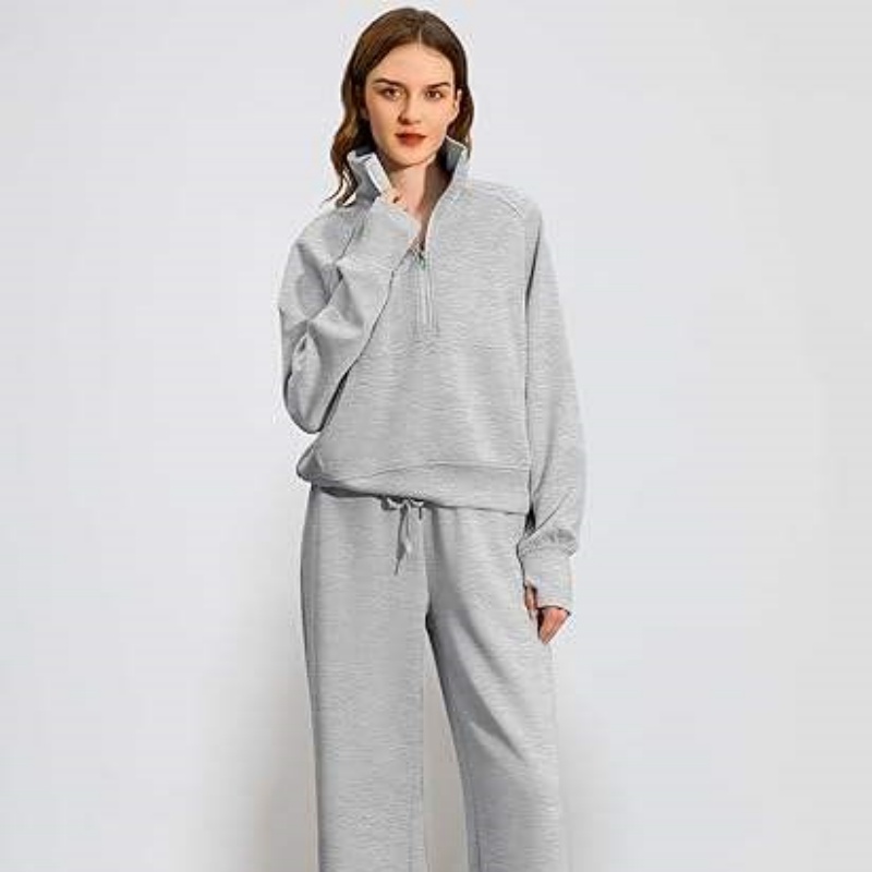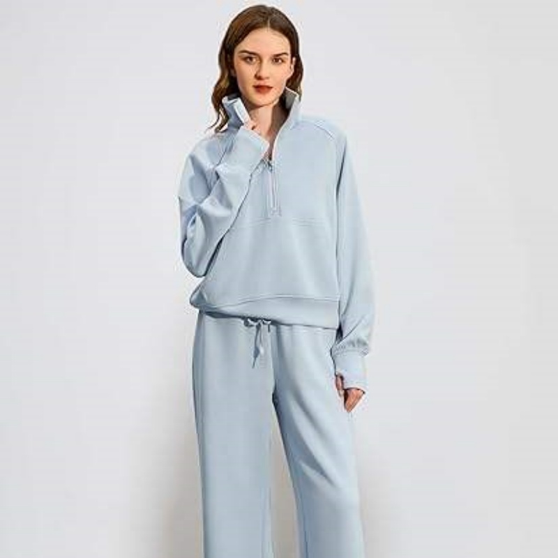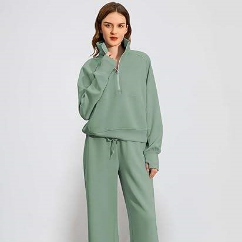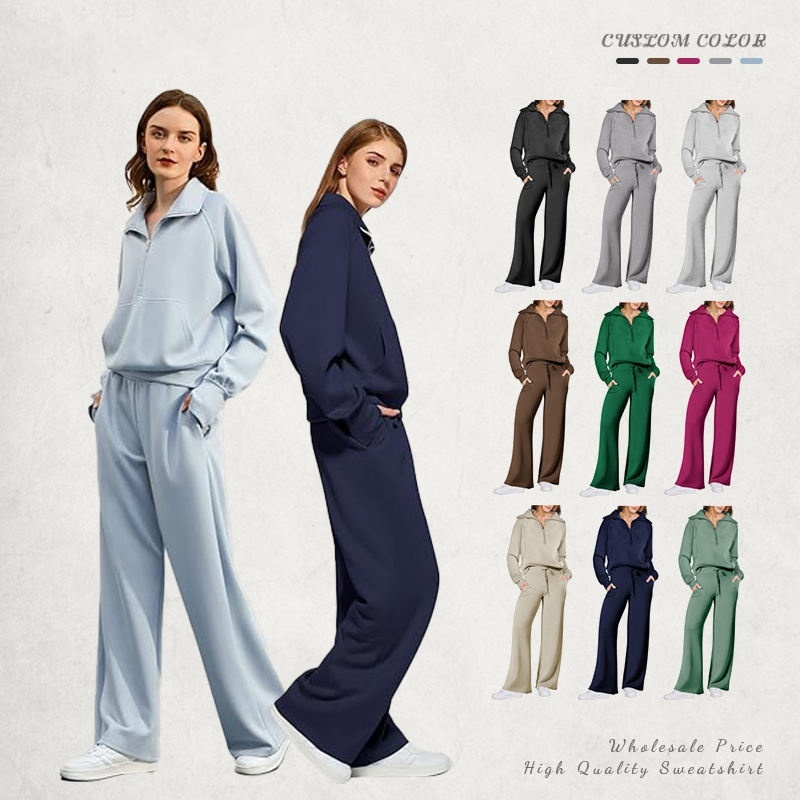 Half-Zip Hoodie Set Wide-Leg Sport Pants Casual 2-Piece Women's Hoodie Set